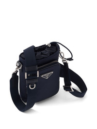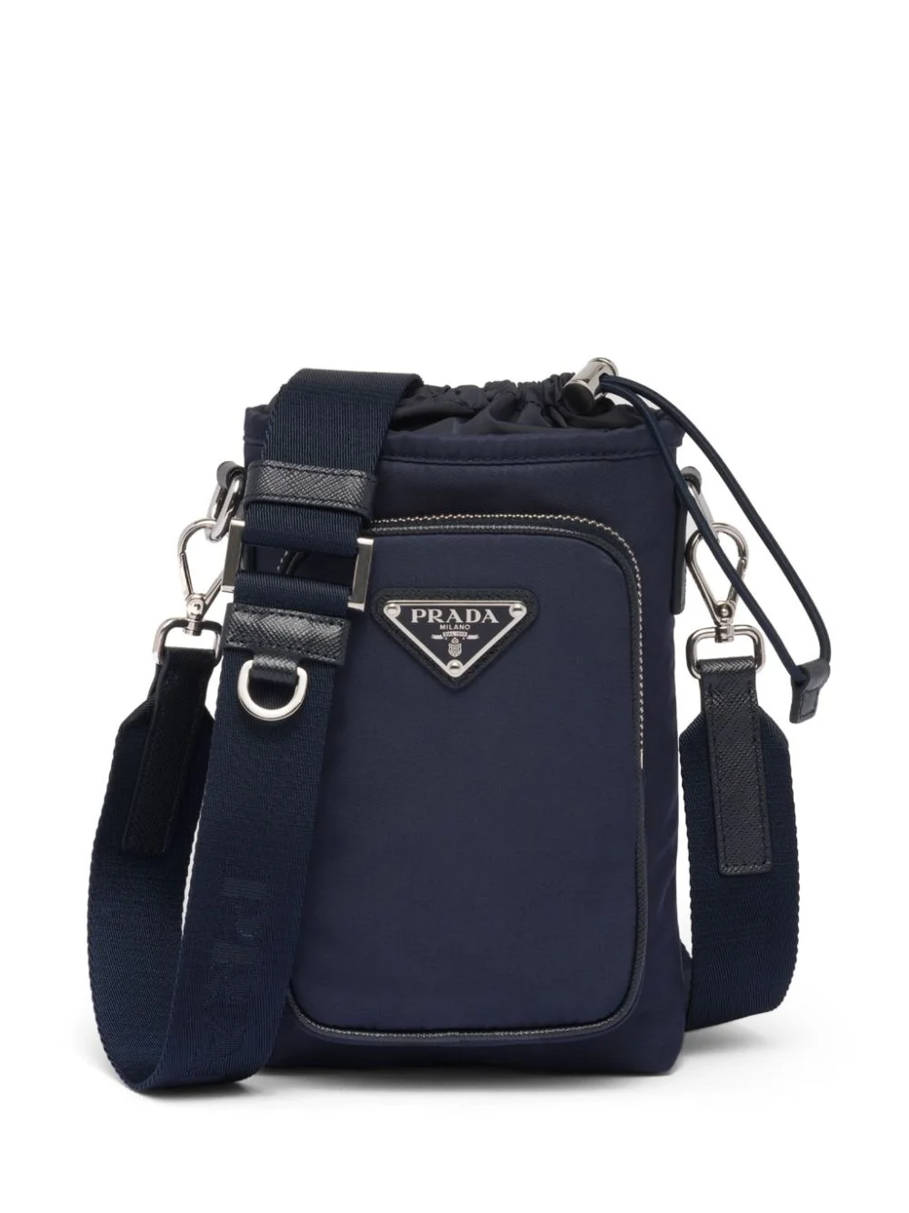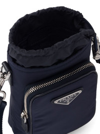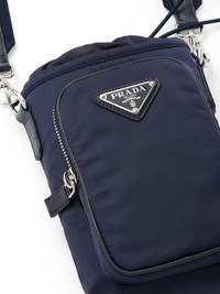 Re-Nylon phone case Highlights - Navy blue - Recycled polyamide - Triangle logo - Front zip-fastening compartment - Top drawstring fastening - Adjustable detachable shoulder strap - Main compartment Composition Outer: Recycled Polyamide 100%, Calf Leather 100%