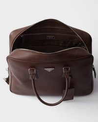 This work bag made of soft leather with a natural finish is characterized by its soft, versatile design. The functional silhouette is embellished with refined, classic details, while the enameled metal triangle logo completes the accessory with an iconic note. - Product code: 2VE027_2BBE_F0038_V_OOO - Leather handles - Enameled metal triangle logo on the front - Zipper closure and lock - Removable leather name tag - Interior with zipper pocket and patch pockets - Logo-print Re-Nylon and nappa leather lining - Leather feet - Imported Height: 28cm Width: 40cm Length: 12.5cm MATERIALS Main material: Calfskin