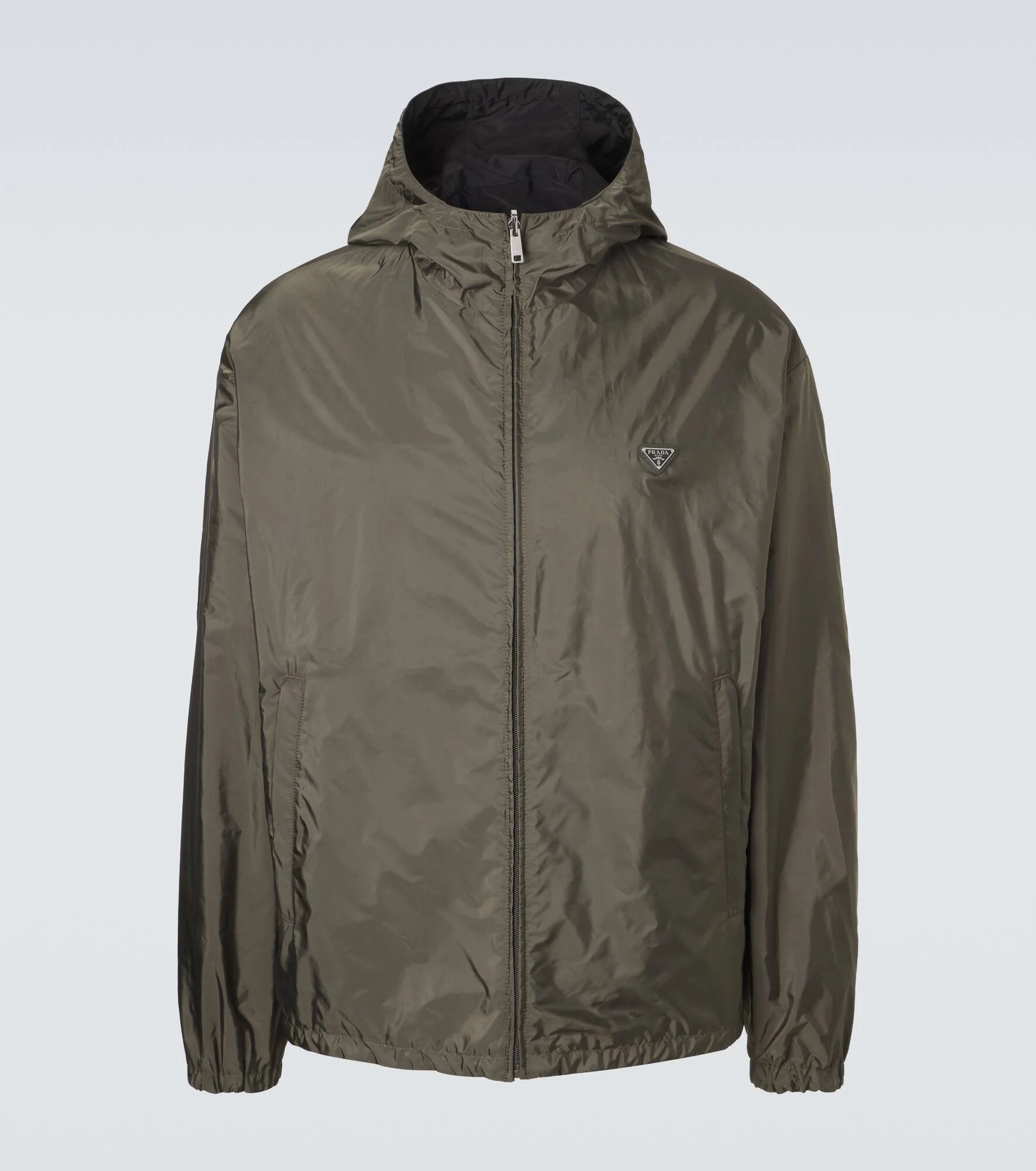 Offering a more sustainable take on a signature fabric, Prada’s Re-Nylon products are made from regenerated ocean plastic waste. This jacket has leather trims and a reversible design. Product Details - Material: 100% polyamide (recycled) - Care instructions: hand wash - Made in Romania - Color: green - Designer color name: Green - Contains non-textile parts of animal origin - Trim: 100% leather - Closure: zipped front - Pockets: zipped pockets - Reversible - Drawstring hood - Item number: P01158896 Size & Fit - True to size - Designed for a loose fit - Adjustable hem - Non-stretchy fabric - Falls to the hip - Height of model is 187cm-73.5" and wears a size L