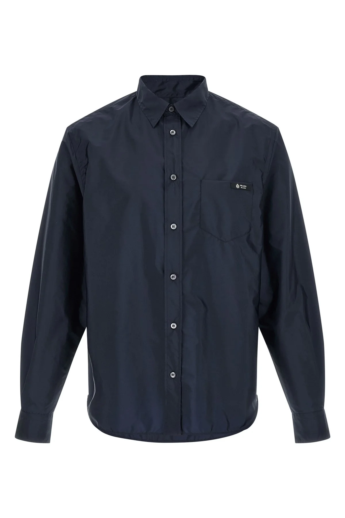 cod. SC834SOOO1WQ9F0ABM Re-Nylon shirt, classic fit with collar and front closure with mother-of-pearl buttons, front patch pocket with logo, rounded hem, long sleeves with cuffs. SUSTAINABLE: This product is made with Re-Nylon, a regenerated yarn made from recycled and purified plastic collected in oceans, fishery nets and textile fibers. Color: Blue Size & Fit: True to size fit Collar size Composition: 100% recycled polyamide Made in: Italy