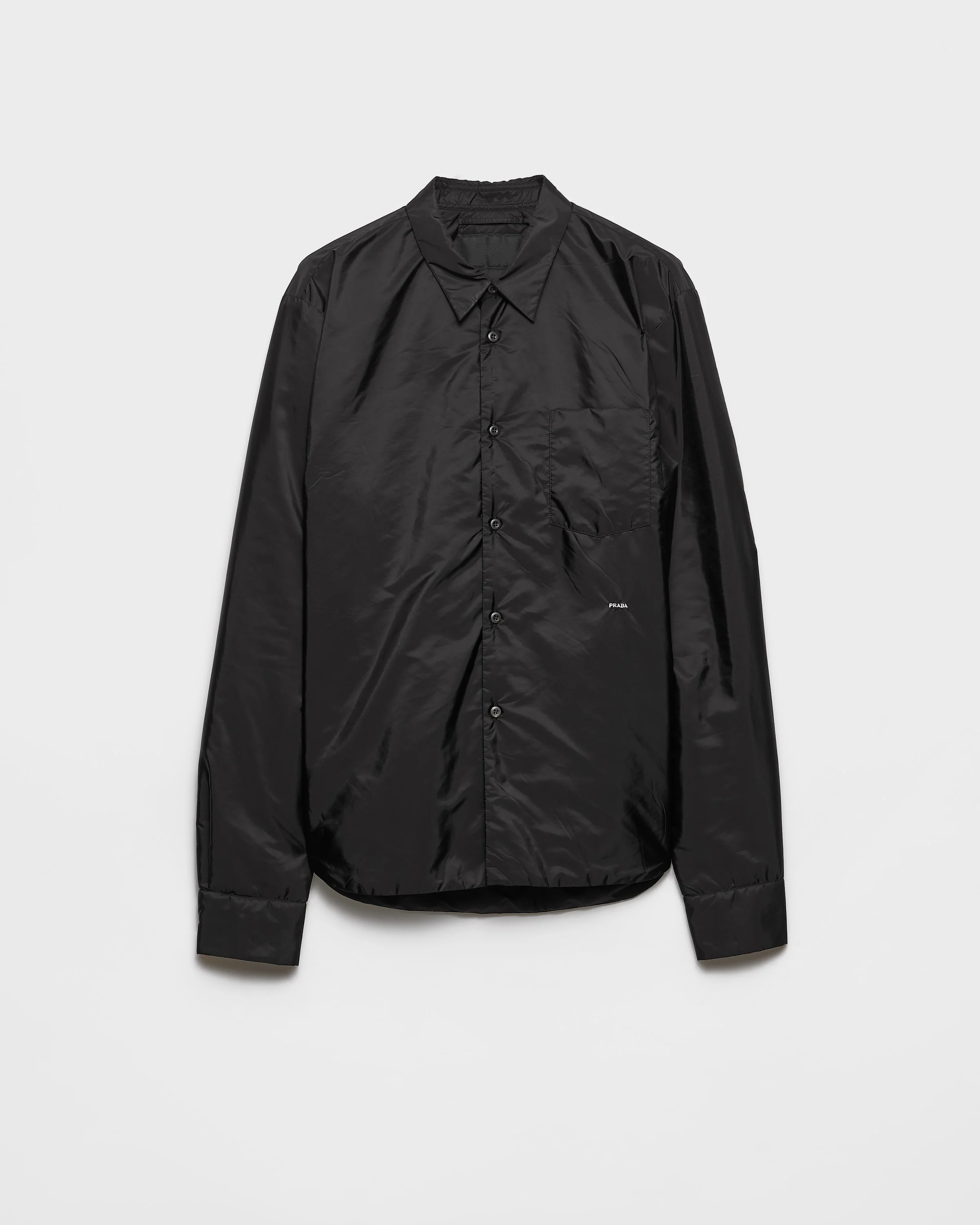 The shirt has a renewed attitude starting from the materials that make it a hybrid garment blending sophistication and functionality. Made of Re-Nylon, the style features a classic silhouette embellished with the emblematic triangle logo. - Product code: UCN662_1WQ9_F0002_S_OOO - Classic fit - Classic collar - Classic breast pocket - Rounded hem - Classic cuff - Mother-of-pearl button closure - The fabric is made of regenerated yarn obtained from recycled plastic materials collected in the ocean - Imported - The model is 188 cm tall and wears a size 48 Height: 74cm MATERIALS Main material: 100% Recycled Polyamide