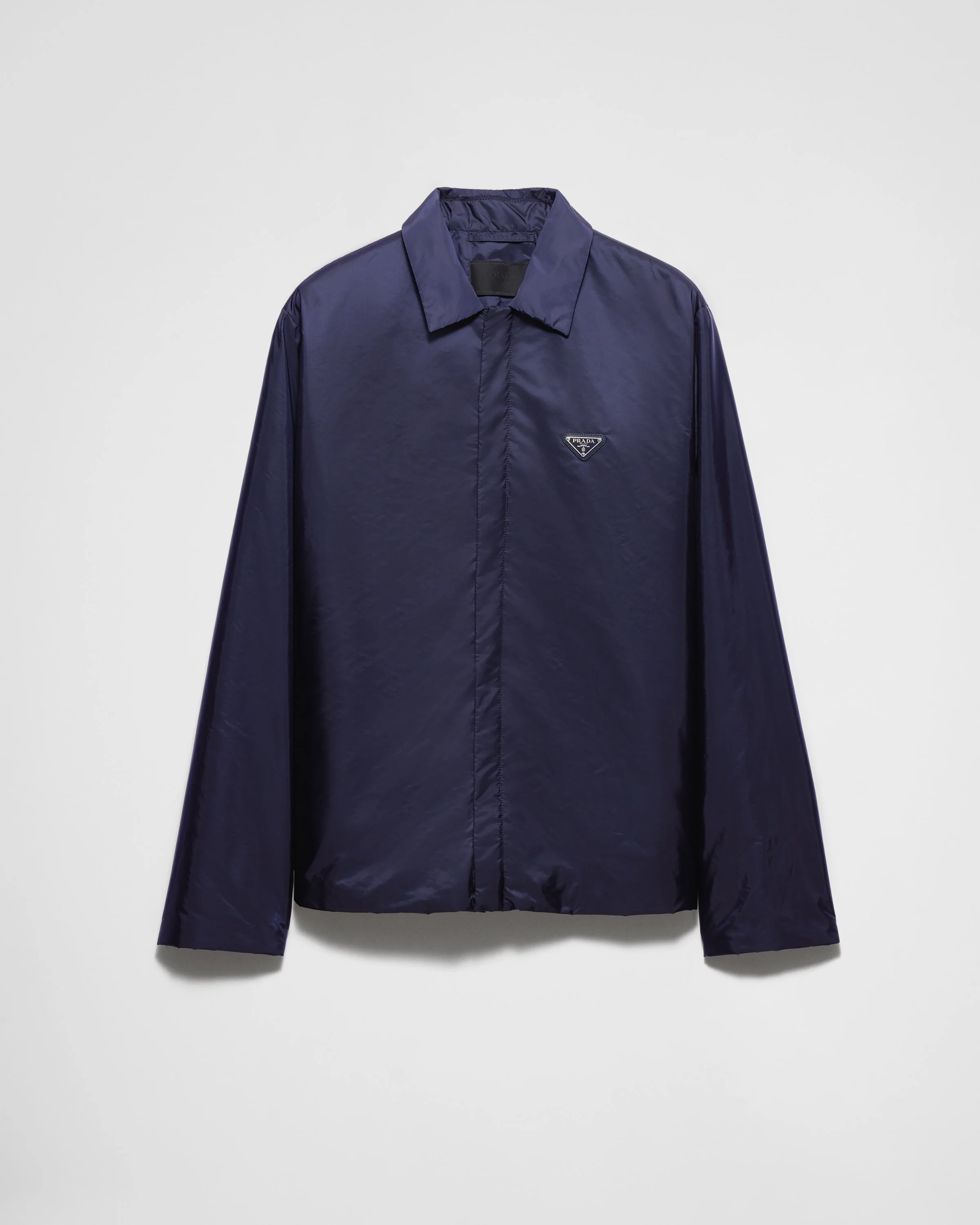 This sleek shirt, a sporty interpretation of a wardrobe classic, is made of Re-Nylon, Prada's innovative regenerated nylon fabric. The enameled metal triangle logo completes the light, versatile style. For sustainable care to preserve the product's characteristics and reduce microfiber shedding, we recommend not washing the item too often. Let the product air out after every use and have it dry cleaned at a specialized ecological dry cleaners. - Product code: SC811M_1WQ9_F0ABB_S_OOO - Loose fit - Classic collar - Straight hem - Placket with hidden zipper and snap closure - Lined and padded garment - Enameled metal triangle logo - Imported - The model is 189 cm tall and wears a size 38 Height: 72cm MATERIALS Main material: 100% recycled polyamide
