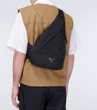 Crafted from the label's sustainable Re-Nylon fabric, this Prada bag can be worn across the shoulder, has a zipped fastening, and is detailed with the famed triangle enamel logo. Product Details - Trim: calf leather - Closure: zipped top - Designer color name: Nero - Material: fabric - Internal details: fabric lining, internal zipped pocket - Made in Italy - Color of fastening: black - Adjustable shoulder strap - Item number: P00581392 Size & Fit - Height 40cm-15.5" - Min. width 12cm-4.5" - Max. width 26cm-10" - Depth 11cm-4.5" - Min. length shoulder strap 73cm-28.5" - Max. length shoulder strap 103cm-40.5"
