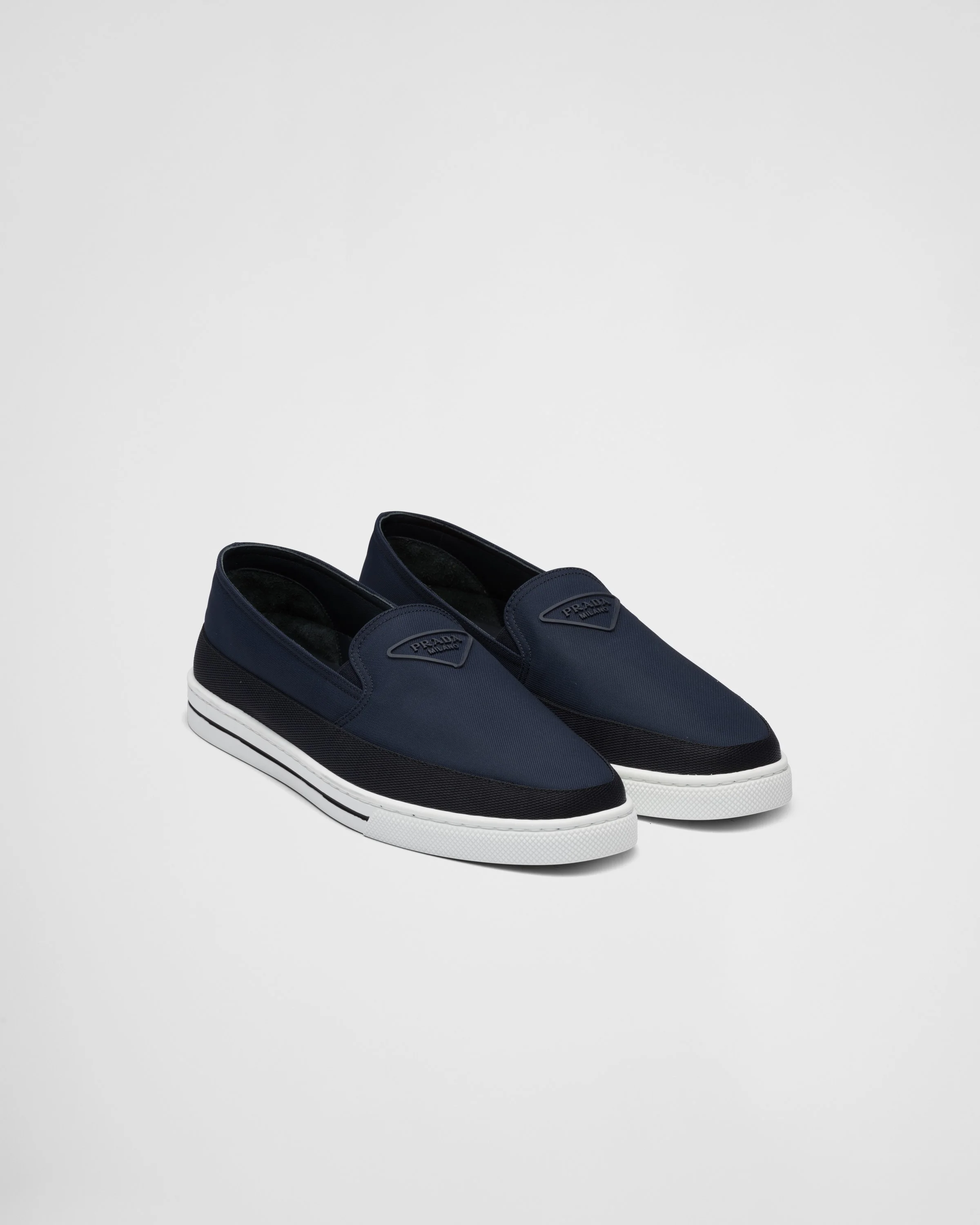 These nylon slip-ons are defined by a modern, minimalist design. The triangle logo is continuously reinterpreted in new ways. Here, it is featured in embossed rubber. This product does not contribute to the SEA BEYOND educational program. - Product code: 2S2964_71L_F073A - Embossed rubber triangle logo - Lightweight foam soles with logo heels - 25 mm - Removable leather-covered insole - Imported MATERIALS Main material: Polyamide polyester polyurethane