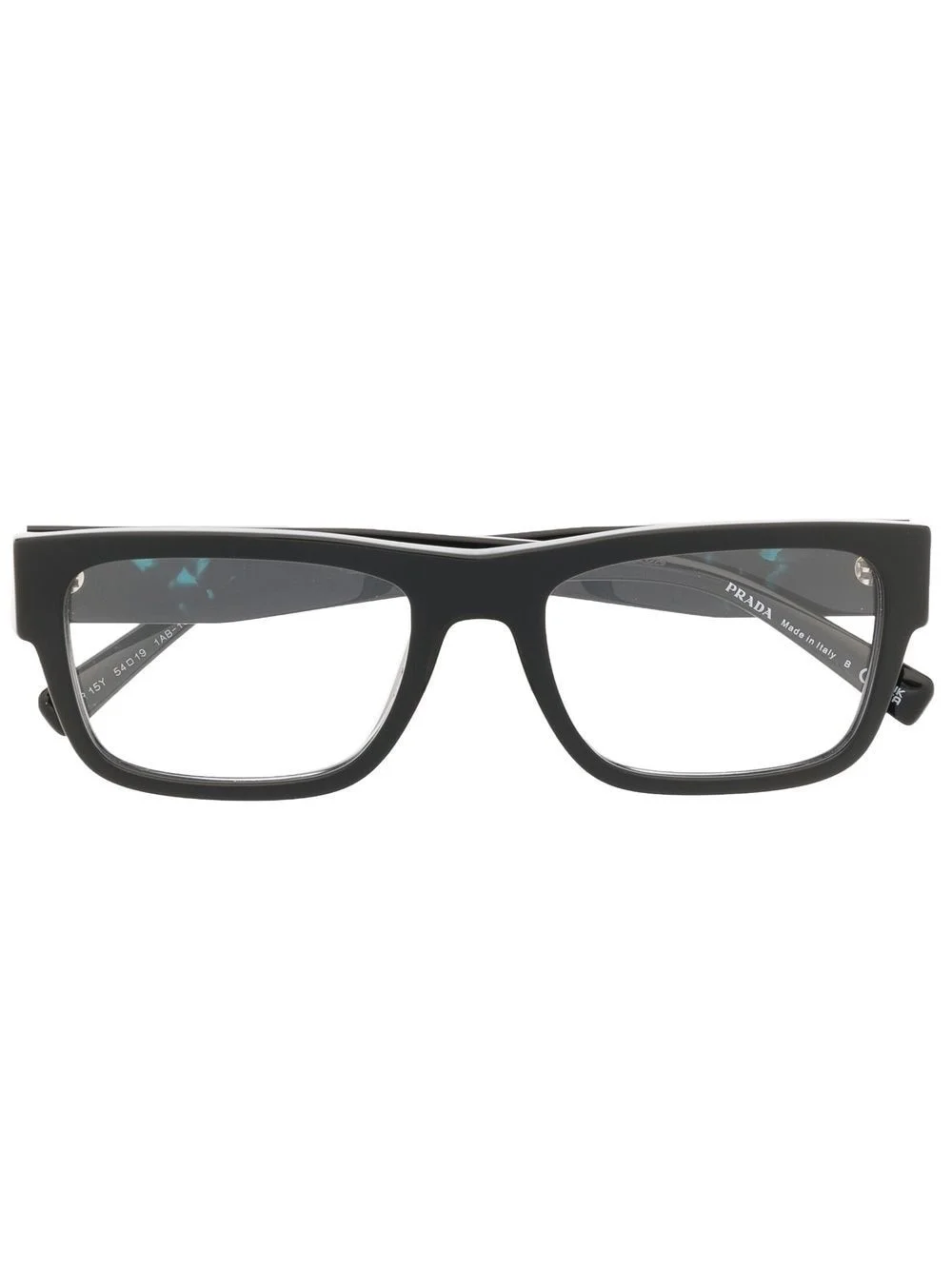 rectangle-frame glasses black acetate rectangle frame clear lenses curved arms These glasses come with a protective case. Composition Acetate 100%, Acrylic 100% SIZE & FIT Measurement Arm Length 5.7 in(14.5 cm) Bridge Width 0.74 in(1.9 cm) Lens Diameter 2.12 in(5.4 cm) Total Width 5.51 in(14 cm)
