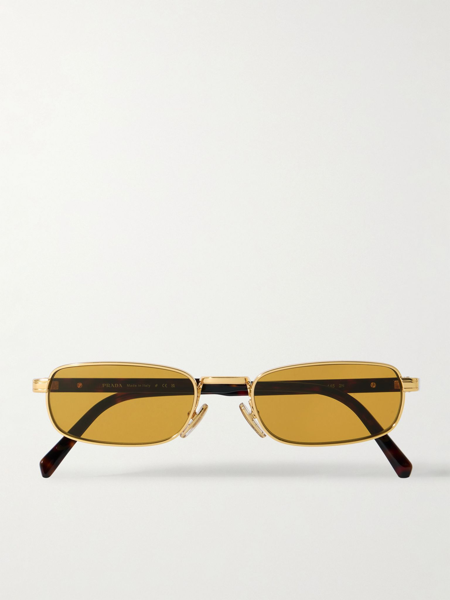 Prada Eyewear's sunglasses have a 90s feel thanks to their narrow rectangular frames. They're made from gold-tone metal and rest on tortoiseshell acetate arms. Details & Care - Gold-tone metal, tortoiseshell acetate - Come with a case - 100% UV protection