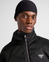 This reversible fleece cardigan has a soft, comfortable silhouette. The style stands out for its versatile, sporty style, while the triangle logo completes it with an iconic note. - Product code: UJL68B_147D_F0806_S_OOO - Oversized fit - Long sleeve - Hem with elasticized drawstring - Elasticized cuffs - Zipper closure - Enameled metal triangle logo - Re-Nylon lining - Length: 74 cm, Size: M - Side zipper pockets - Imported - The model is 189 cm tall and wears a size 48 Height: 74cm MATERIALS Main material: 13% polyamide 87% cashmere