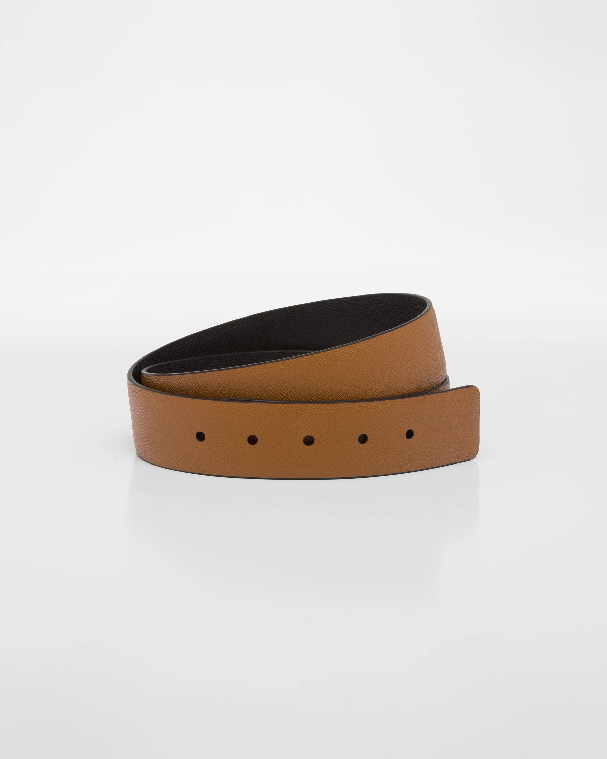 Part of a line of modular accessories with a versatile soul, this belt strap is paired with a buckle of your choice to let you create different combinations. Prada's iconic Saffiano leather is synonymous of luxury and is identified with traditional Italian leather-working: a very high quality leather, it is defined by its crosshatch texture and waxed finish. - Product code: 2CA004_053_F0LU7 - Five holes - Reversible item - Belt buckle not included - Imported Height: 3.5cm MATERIALS Main material: Calfskin