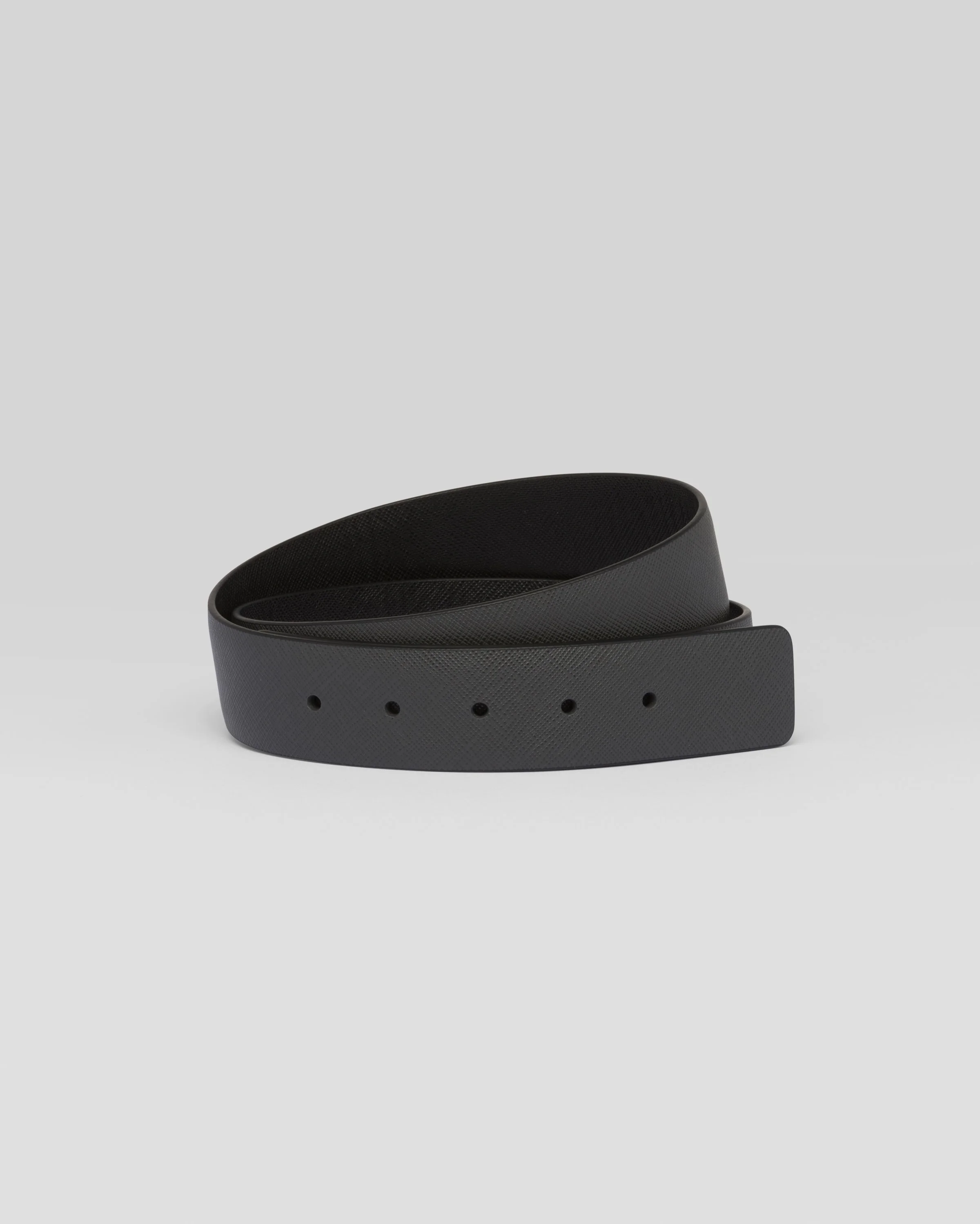 Part of a line of modular accessories with a versatile soul, this belt strap is paired with a buckle of your choice to let you create different combinations. Prada's iconic Saffiano leather is synonymous of luxury and is identified with traditional Italian leather-working: a very high quality leather, it is defined by its crosshatch texture and waxed finish. - Product code: 2CA004_053_F0KL3 - Five holes - Reversible item - Belt buckle not included - Imported Height: 3.5cm MATERIALS Main material: Calfskin