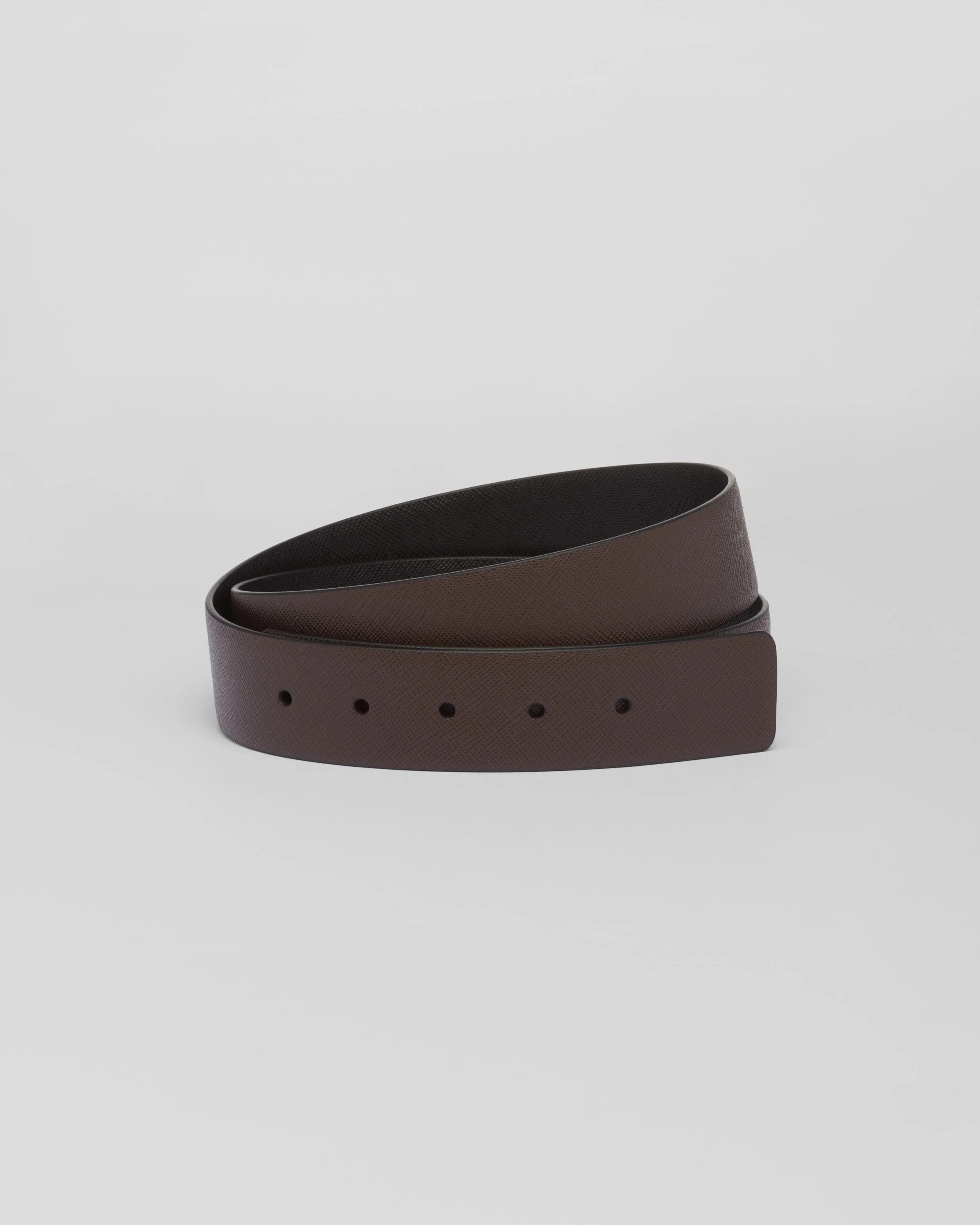 Part of a line of modular accessories with a versatile soul, this belt strap is paired with a buckle of your choice to let you create different combinations. Prada's iconic Saffiano leather is synonymous of luxury and is identified with traditional Italian leather-working: a very high quality leather, it is defined by its crosshatch texture and waxed finish. - Product code: 2CA004_053_F0YIH - Five holes - Reversible item - Belt buckle not included - Imported Height: 3.5cm MATERIALS Main material: Calfskin