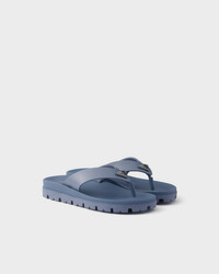These rubber thong sandals have a contemporary silhouette with sleek details. The style, enriched by the iconic enameled metal triangle logo, is characterized by a rubber sole with lug tread that adds a sporty touch. - Product code: 2Y3130_3LKK_F0D57_F_G001 - Enameled metal triangle logo applied on the upper - Rubber sole with lug tread - Heel height 025 mm - Leather-covered insole - Imported MATERIALS Main material: Calfskin