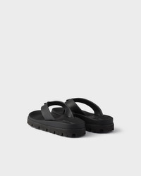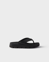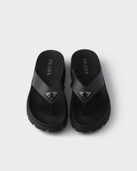 These rubber thong sandals have a contemporary silhouette with sleek details. The style, enriched by the iconic enameled metal triangle logo, is characterized by a rubber sole with lug tread that adds a sporty touch. - Product code: 2Y3130_3LKK_F0002_F_G001 - Enameled metal triangle logo applied on the upper - Rubber sole with lug tread - Heel height 025 mm - Leather-covered insole - Imported MATERIALS Main material: Calfskin