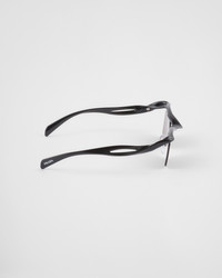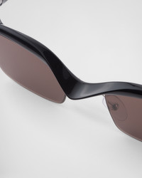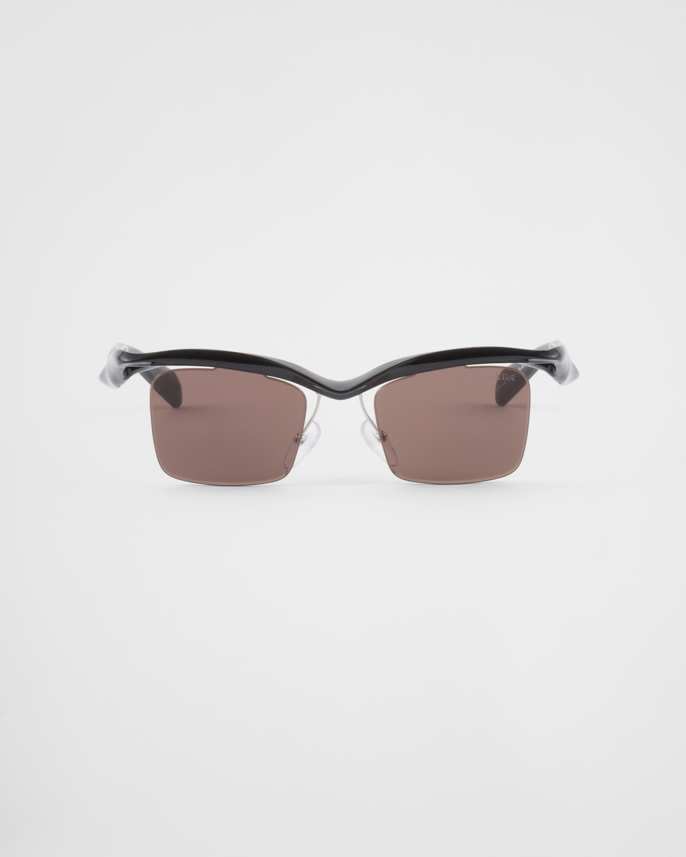 An unconventional and futuristic design defines these runway sunglasses. The ultra-light semi-rimless frame features soft curves and openings combined with the rectangular lenses. The fluid design of the temples is decorated on the temple tip with the Prada lettering logo. - 商品货号: SPRA15_E1AB_F08C1_C_047 - Nylon frame front - Color: Black - -Frame not compatible with graduated lenses - 100% UVA / UVB protection - Adjustable nose pads suitable for any fit - Lens-nose-temple measurement: 47-20-135 mm - Article accompanied by dedicated packaging - Other colors available - 产品标签信息