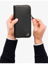 PRODUCT DETAILS - Prada leather wallet - 100% leather - Zip fastening - Brand plaque, 12 card slots, three bill compartments at interior, zipped coin compartment at interior - Height 20cm, width 10.3cm - Specialist leather clean Ref: R04431217