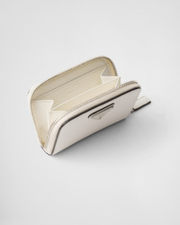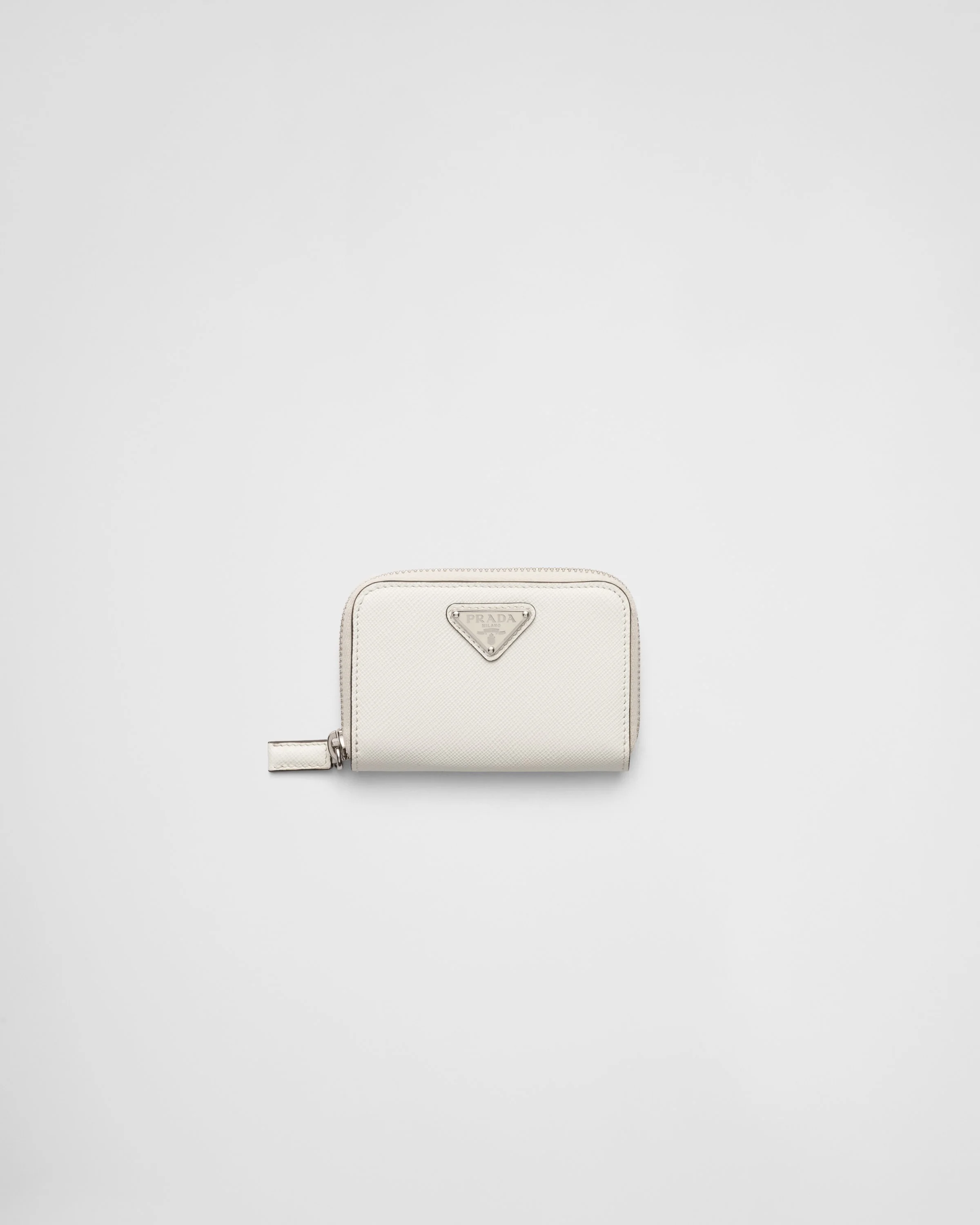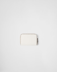 This Saffiano leather coin purse stands out for its sleek design. The accessory with two card slots and an internal pocket is decorated with the iconic enameled metal triangle logo. - Product code: 2MM003_QHH_F0009 - Zipper closure - Enameled metal triangle logo - Two card slots - One inside pocket - Moire and Saffiano leather lining - Imported Height: 7.5cm Width: 11cm MATERIALS Main material: Calfskin
