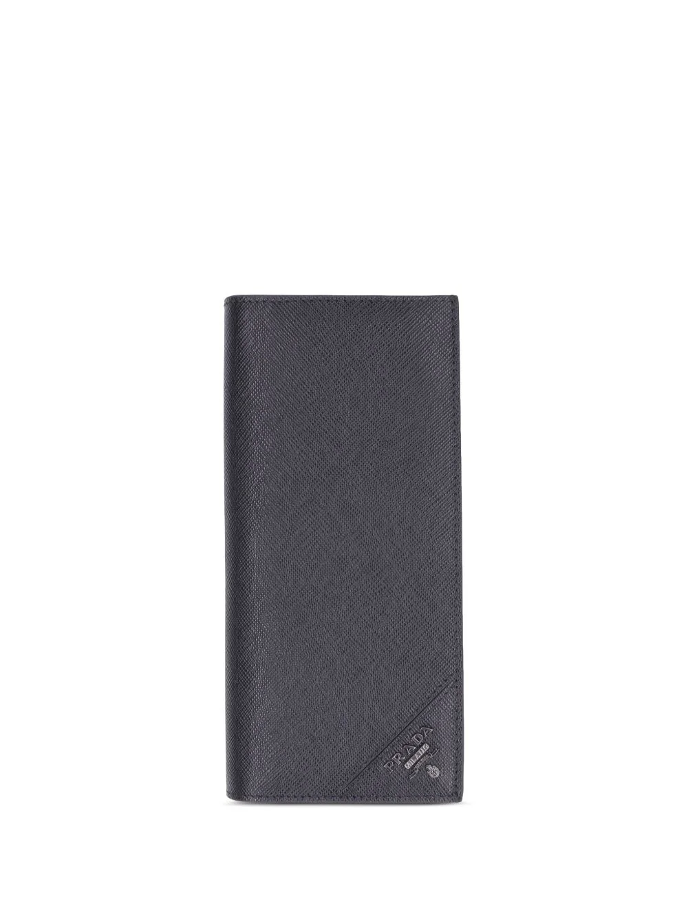 Saffiano leather document holder Highlights - Black - Saffiano leather - Textured finish - Bi-fold design - Rectangle shape - Triangle logo - Internal card slots - Passport slot Composition Outer: Calf Leather 100% SIZE & FIT Measurement WIDTH 3.54 in(9 cm) LENGTH 7.48 in(19 cm)