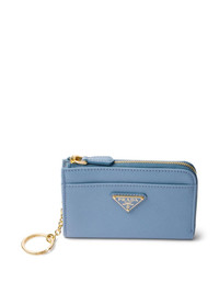 Saffiano keychain Highlights - Baby blue - Top zip fastening - Keyring attachment - Enamel triangle logo - Rear zip-fastening pocket Composition Outer: Saffiano Leather 100% SIZE & FIT Measurement LENGTH 3.34 in(8.5 cm) WIDTH 5.11 in(13 cm)