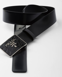An original mix of patterns enhances this belt with a sleek line. The elegant crosshatch pattern of Saffiano leather creates a dialog with the fine texture of crocodile, enhancing the accessory with rich tonal nuances. The iconic metal lettering logo stands out on the buckle. - Product code: 2CC534_2FLL_F0002 - Crocodile-covered metal buckle - Metal lettering logo - Imported Height: 3.5cm MATERIALS Main material: Calfskin