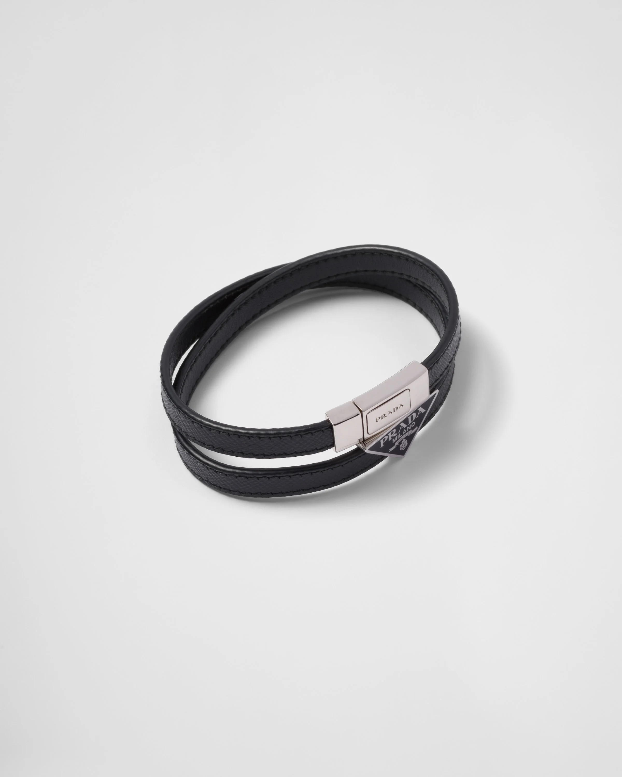 This double bracelet made in leather has a double Prada logo. - Product code: 2IB286_053_F0002 - Push-lock clasp - Metal triangle logo with enameled loop - Imported Height: 0.8cm Width: 0.8cm MATERIALS Leather
