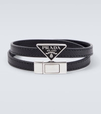 Prada takes Italian heritage into a distinctly modern direction with a streamlined and fashion-forward approach. Made from signature Saffiano leather, this sleek bracelet is finished with the iconic triangle logo. Product Details - Material: leather - Made in Italy - Item color: black - Closure: clasp fastening - Includes: box - Item number: P01133605 Size & Fit - Length when open size S 38cm-15" - Length when open size M 41cm-16" - Min. width 0,7cm-0.5" - Max. width 1,3cm-0.5"