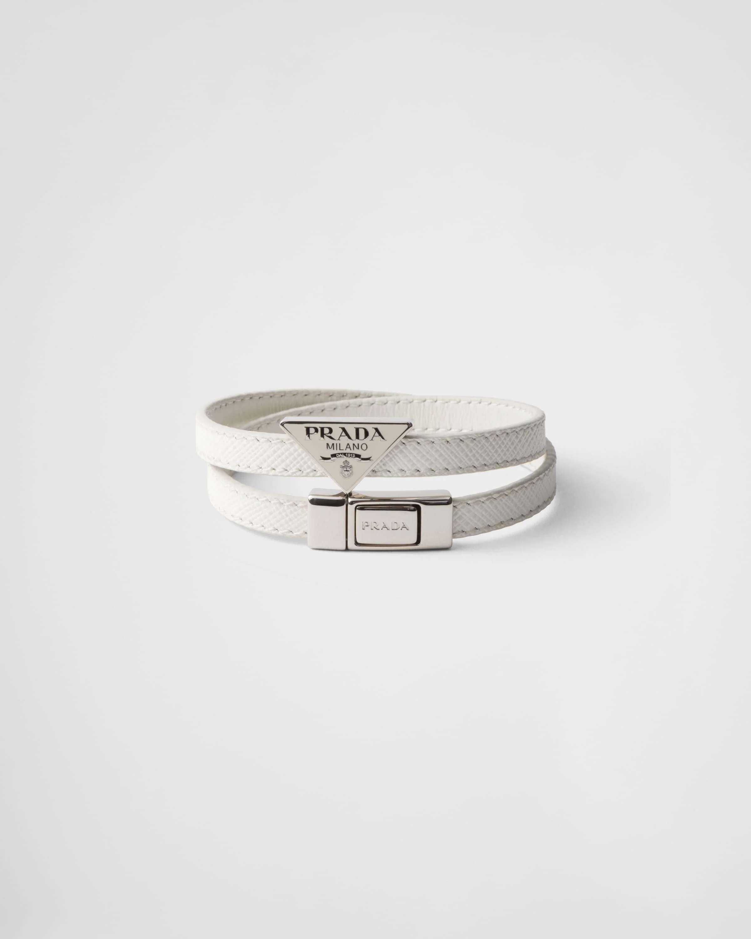This double bracelet made in leather has a double Prada logo. - Product code: 2IB286_053_F0009 - Push-lock clasp - Metal triangle logo with enameled loop - Imported Height: 0.8cm Width: 0.8cm MATERIALS Leather