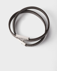 This double bracelet made in leather has a double Prada logo. - Product code: 2IB286_053_F0170 - Push-lock clasp - Metal triangle logo with enameled loop - Imported Height: 0.8cm Width: 0.8cm MATERIALS Leather