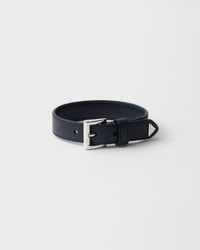 The distinctive texture of Saffiano leather, an emblematic material of Prada collections, enriches this bracelet with a modern and sophisticated design. - Product code: 2IB533_053_F0216 - Metal buckle closure - Metal triangle logo - Imported Height: 1.5cm MATERIALS Leather