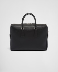 This elegant and refined briefcase is characterized by its functional structure composed of two compartments, a removable name tag, various internal pockets, and a detachable nylon and leather shoulder strap. Made of Saffiano leather, an iconic material of the brand, the accessory is decorated with the emblematic enameled metal triangle logo, which first appeared in 1913 on trunks designed by Mario Prada. - Product code: 2VE022_9Z2_F0002_V_OOO - Two compartments - Leather handles - Detachable adjustable nylon tape and leather shoulder strap - Enameled metal triangle logo on the front - Zipper closure - Removable leather name tag - Interior with zipper pocket, patch pocket, and small patch pocket - Logo-print nylon lining - Imported Height: 28cm Width: 38cm Length: 6.5cm MATERIALS Main material: Calfskin