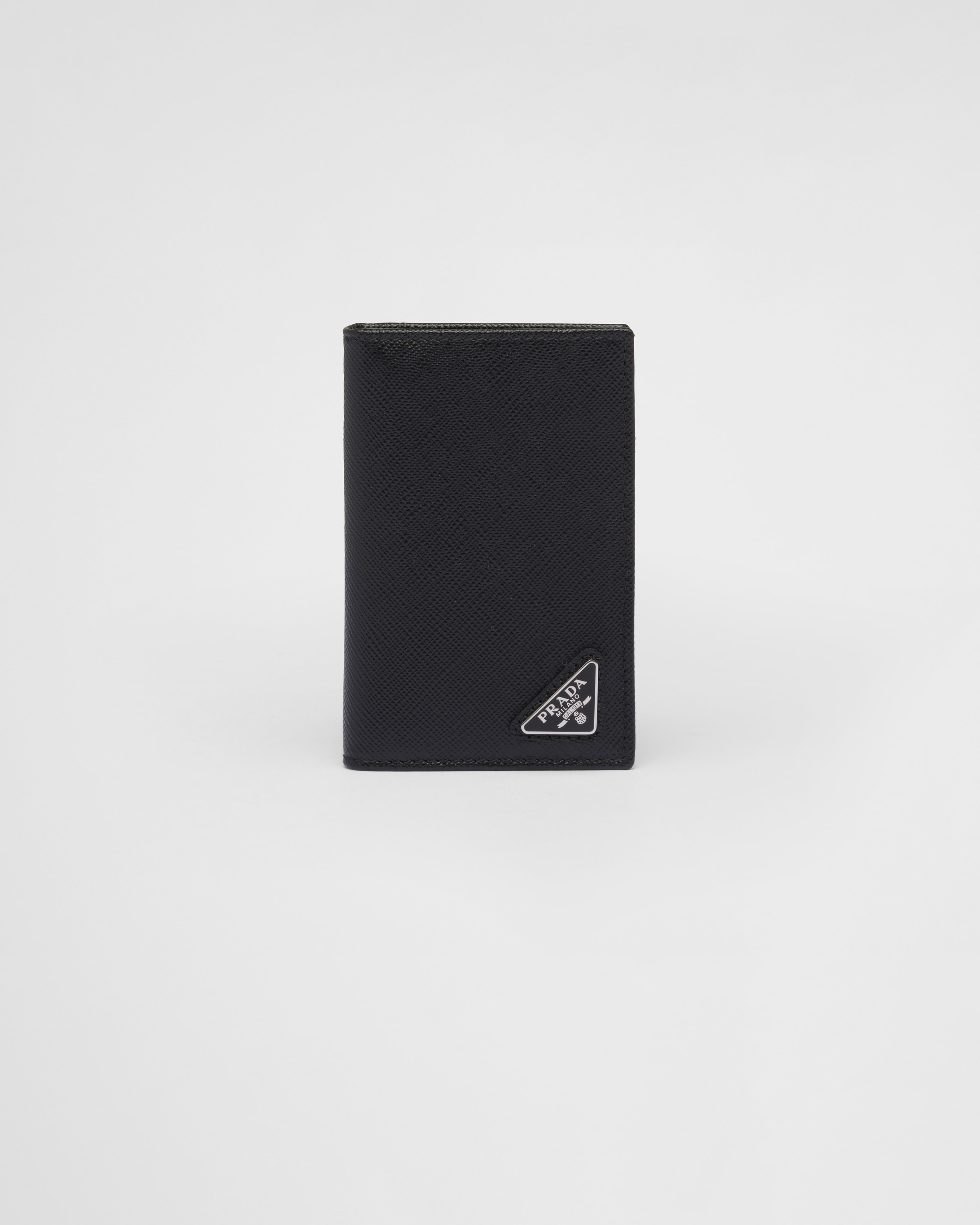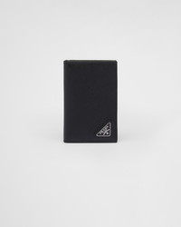 A monotone Saffiano leather credit card holder with triangular Prada logo in the corner. Inside contains six credit card slots, two pockets and a heat-embossed Prada logo. - Product code: 2MC101_QHH_F0002 - Enameled metal triangle logo - Six card slots - Moire and Saffiano leather lining - Imported Height: 11cm Width: 7cm MATERIALS Main material: Calfskin