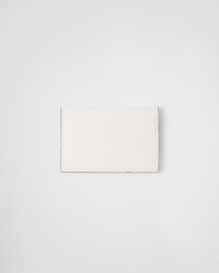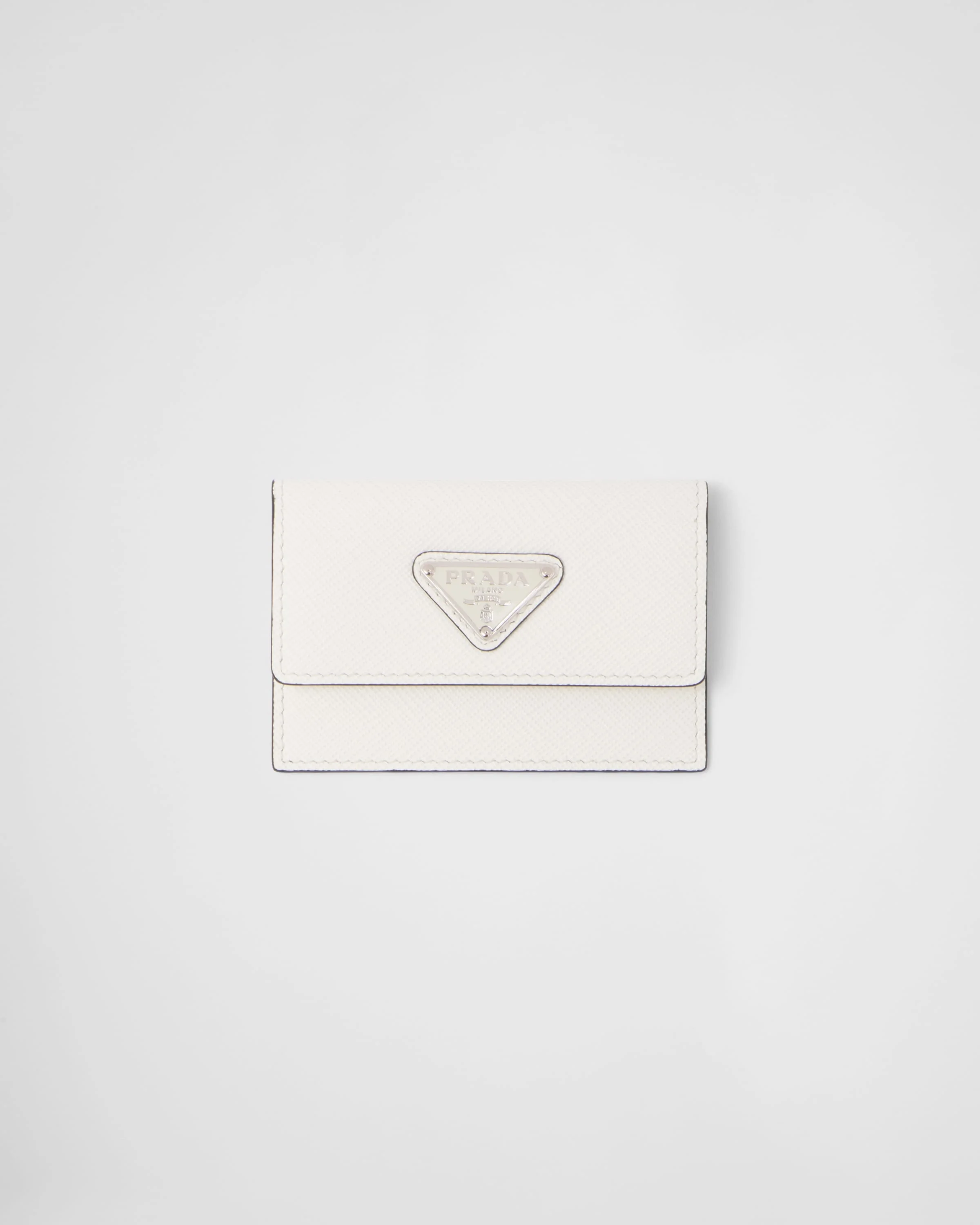 This elegant Saffiano leather card holder with a minimalist line stands our for the enameled metal triangle logo on the front, which first appeared in 1913 on trunks designed by Mario Prada. - Product code: 2MF028_QHH_F0009 - Snap closure - Enameled metal triangle logo - Two card slots - Moire and Saffiano leather lining - Imported Height: 7cm Width: 10cm MATERIALS Main material: Calfskin