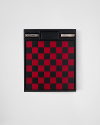 Elegant checkers set with metal playing pieces, contained in an elegant Saffiano leather box. - Product code: 2SG078_0DC_F0002 - Saffiano leather - Metal playing pieces - Saffiano leather case - Imported - Leather Width: 33.5cm Length: 39.8cm