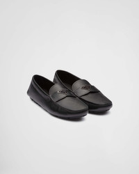 These deconstructed loafers made of fine Saffiano leather express casual elegance. The shoe is accented by the iconic logo on the strap and the rubber sole with tortoiseshell tread. - Product code: 2DD178_053_F0002_F_U00I - Upper: Saffiano leather - Deconstructed style - Leather strap with enameled metal triangle logo - Removable insole - Rubber block sole - Imported MATERIALS Main material: Calfskin