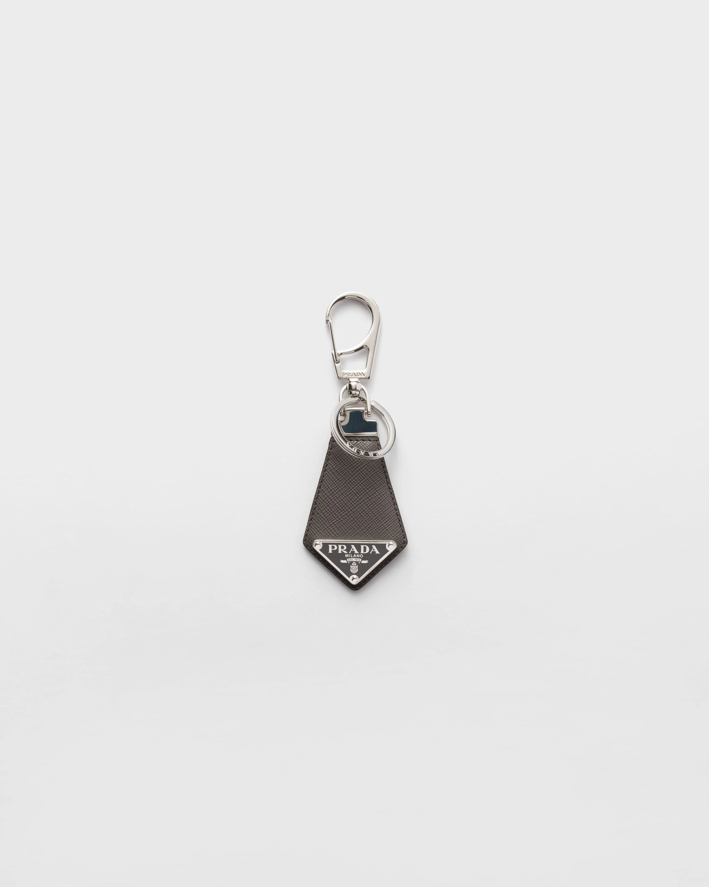 This elegant keychain is built from Saffiano leather in the shape of a tie. Embellished with the triangular Prada logo, it offers a hook and split ring for attaching keys. - Product code: 2PP041_053_F0170 - With snap-hook and ring - Enameled metal triangle logo - Imported Height: 7cm Width: 5cm MATERIALS Main material: Calfskin