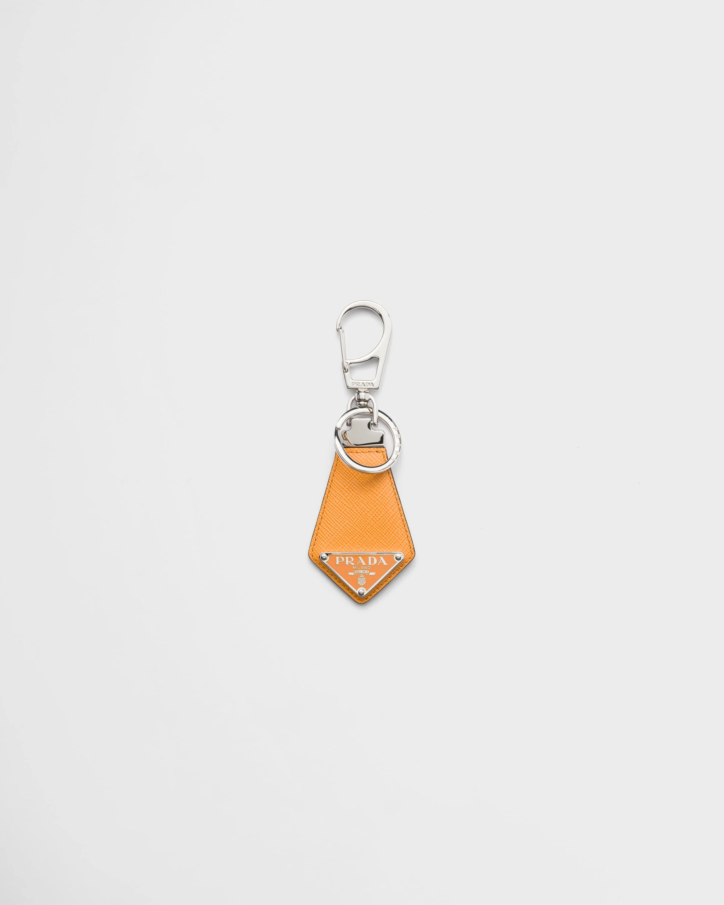 This elegant keychain is built from Saffiano leather in the shape of a tie. Embellished with the triangular Prada logo, it offers a hook and split ring for attaching keys. - Product code: 2PP041_053_F0287 - With snap-hook and ring - Enameled metal triangle logo - Imported Height: 7cm Width: 5cm MATERIALS Main material: Calfskin