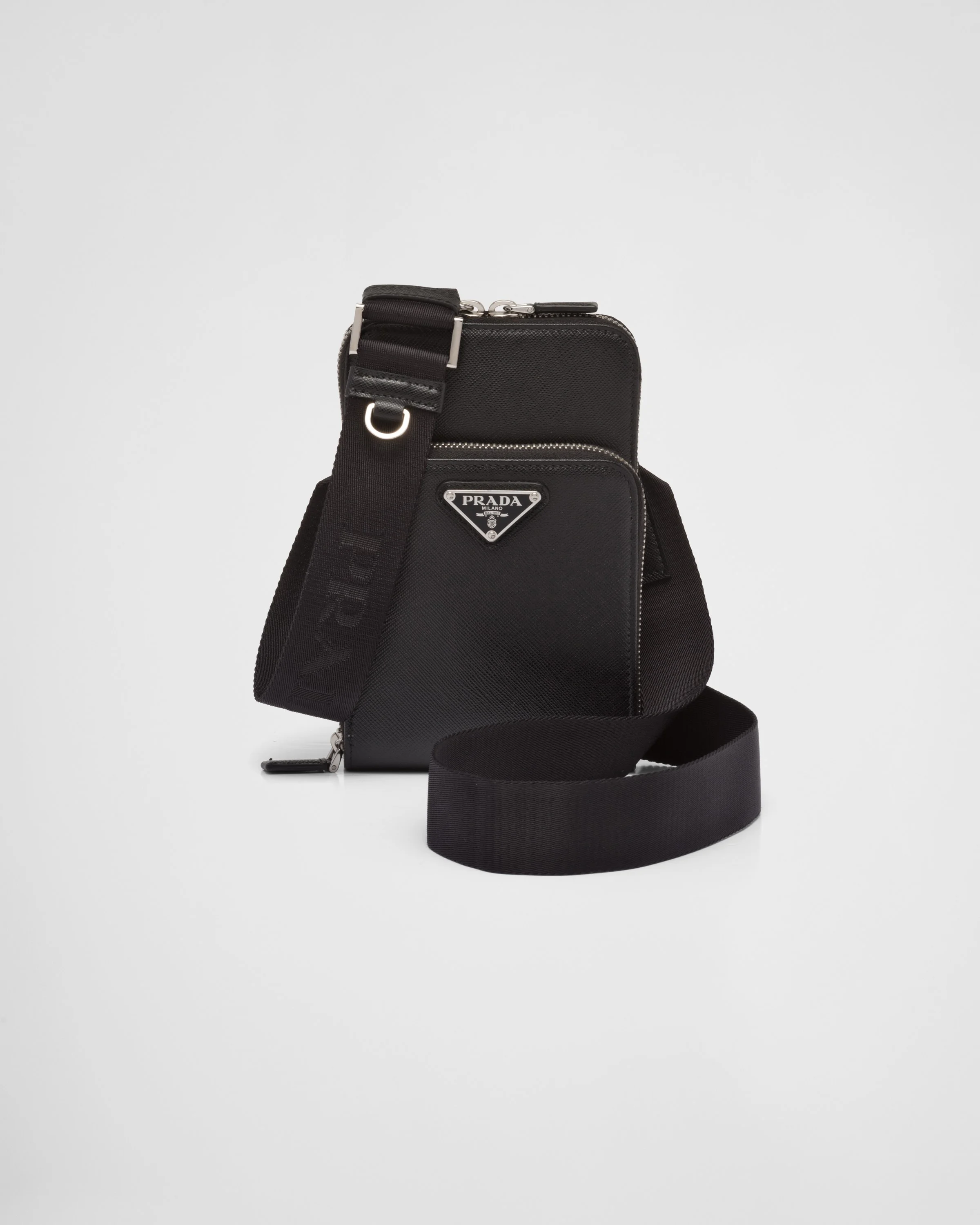 Complete with a detachable shoulder strap, this smartphone case is made of Saffiano, an iconic Prada material: calf leather of the highest quality defined by the crosshatch texture and waxed finish. The accessory has three card slots and a zipper closure. - Product code: 2ZH126_053_F0002 - With belt loop - Zipper closure - Enameled metal triangle logo - Three card slots - Detachable adjustable woven nylon shoulder strap - Imported Height: 18cm Width: 11.5cm MATERIALS Main material: Calfskin