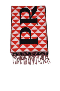 Black, white and red tricolour scarf Prada. Prada logo contrasting on both sides. Fringes on both ends. 100% wool. Made in Italy.