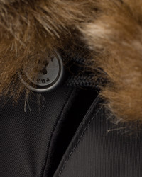 This warm, cozy hood is made of Re-Nylon with soft shearling trim. The enameled metal triangle logo adds its signature touch to the stylish accessory. - Product code: 2HC453_2HL6_F0002 - Enameled metal triangle logo - Loden fabric lining - Imported MATERIALS Main material: Recycled Polyamide