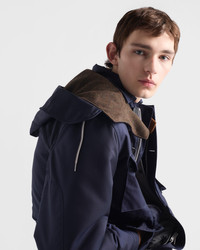 Functionality and lightness meet in this oversized jacket with shirt-style collar and hood. Zipper, buttons and cotton drawstring define the versatile design, completed by the fabric triangle logo detail. - Product code: SGD043_18PW_F0008_S_OOO - Oversized fit - Shirt-style collar with hood - Straight sleeves - Zipper closure and buttons - Patch pocket - Cuffs with strap and button - Wide shoulder - Straight hem - Cotton drawstring - Unlined jacket - With removable lining - Fabric triangle logo - Imported - The model is 191 cm tall and wears a size 48 Height: 78cm MATERIALS Main material: 100% Recycled Polyamide