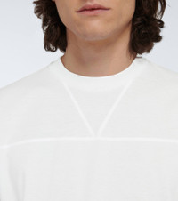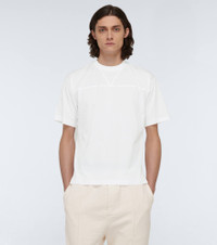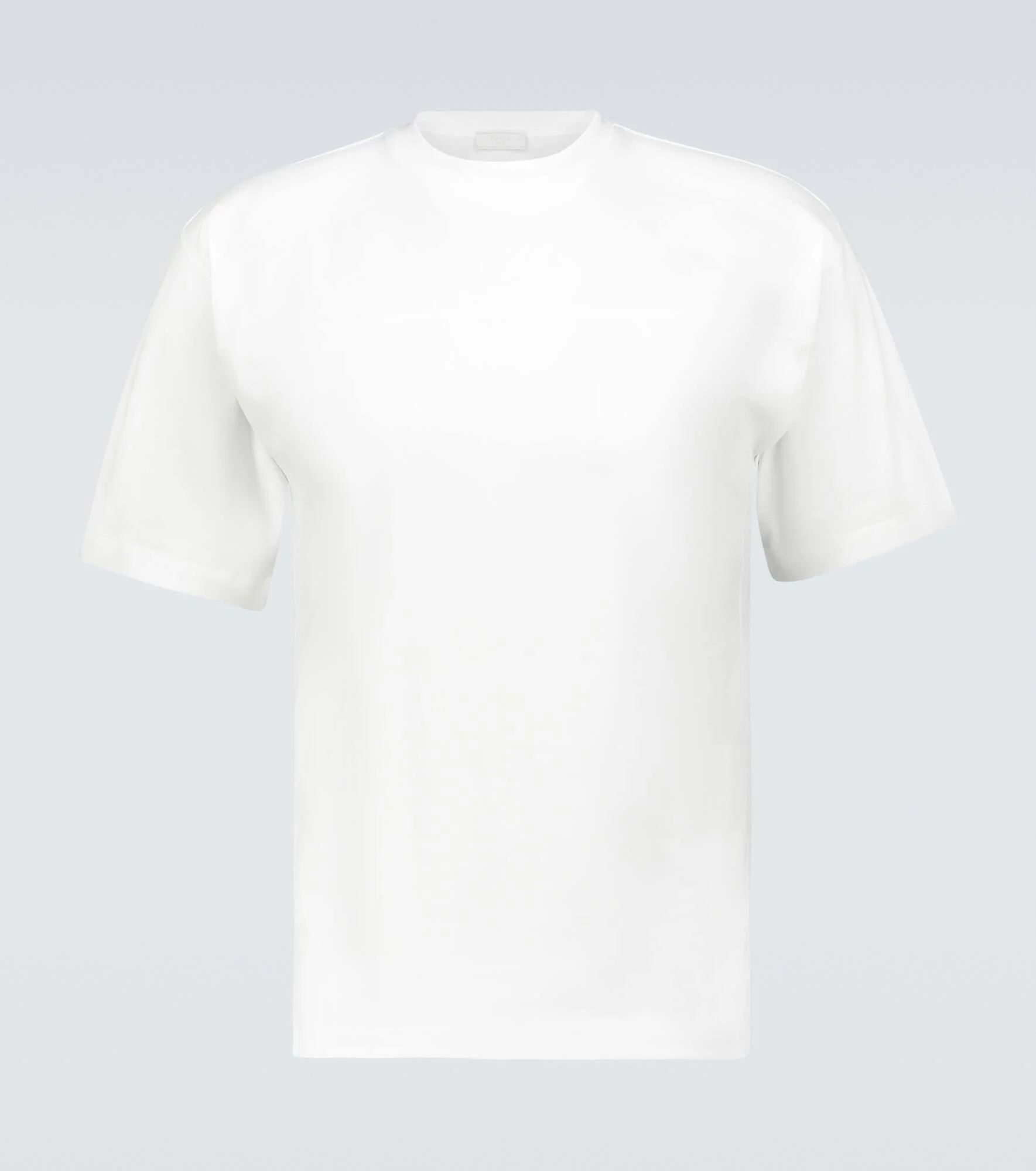 Woven from 100% cotton in white, this short-sleeved T-shirt from Prada has ribbed details at the waist, and is finished with visible stitching around the crewneck. Product Details - Care instructions: machine wash at 30 degrees - Material: 100% cotton - Designer color name: Bianco - Item number: P00521886 Size & Fit - True to size - Dropped shoulders - Straight fit - Falls to the hip - The model in the picture is 185cm-6'1" and wearing a size M