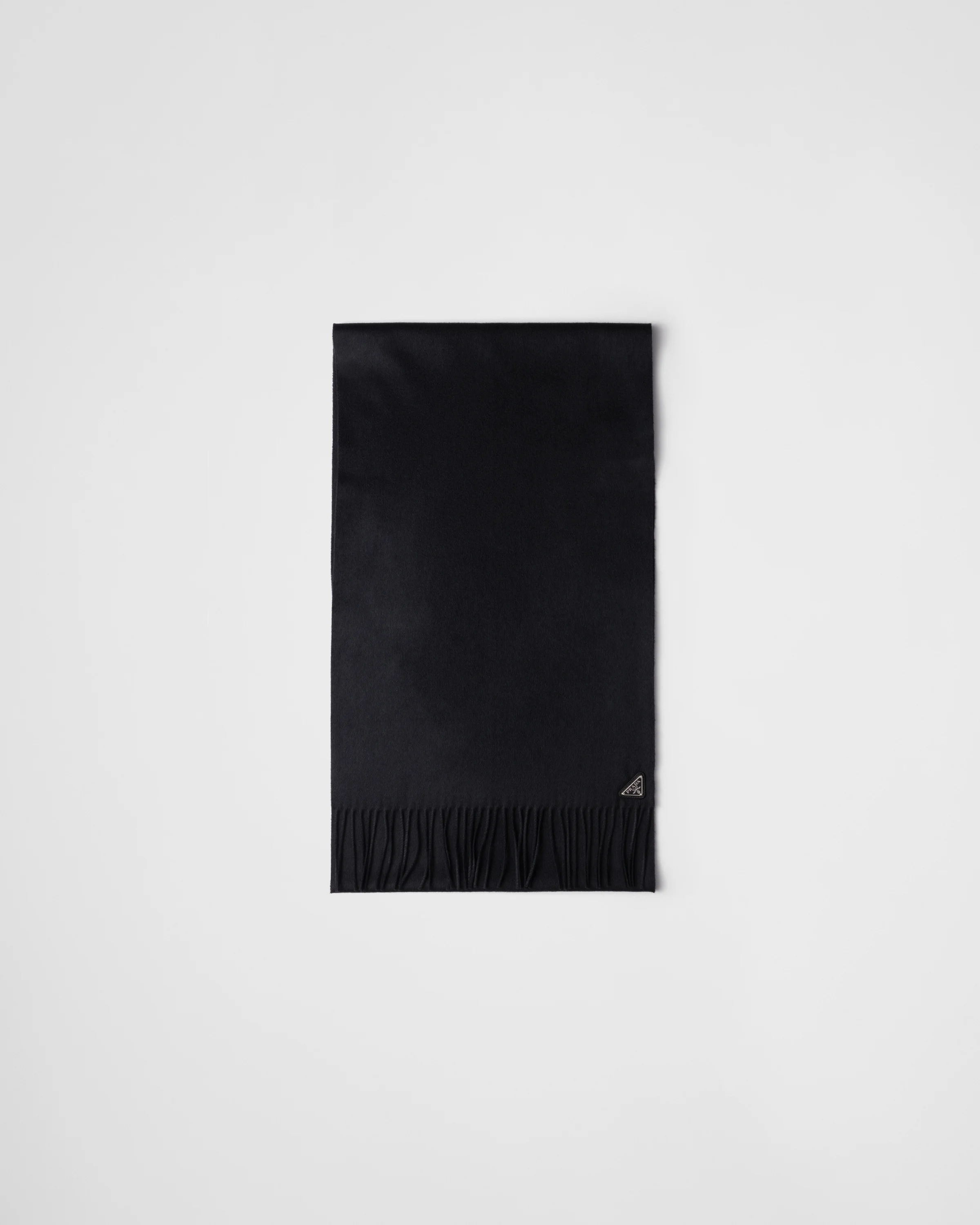 The sleek design of this scarf is distinguished by its sophisticated, classic allure and the soft, luxurious touch of the silk and cashmere blend yarn. - Product code: 2FS065_2COP_F0002 - Enameled metal triangle logo - Fringe on two sides - 51% silk 49% cashmere - Imported Height: 170cm Width: 35cm MATERIALS Main material: Silk cashmere