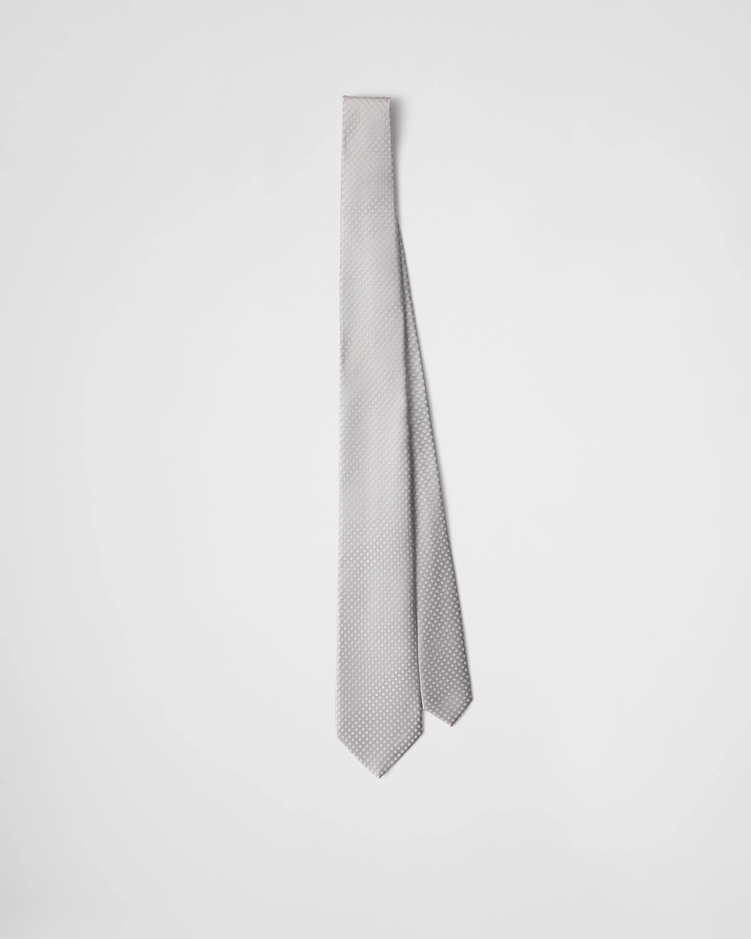 Prada's emblematic codes inspire the design of this fine silk tie, an accessory with formal elegance presented with contemporary allure. - Product code: UCR77_16P7_F0024_S_141 - Sartorial label - Blade 7 cm - Imported Height: 150cm MATERIALS Main material: 100% silk