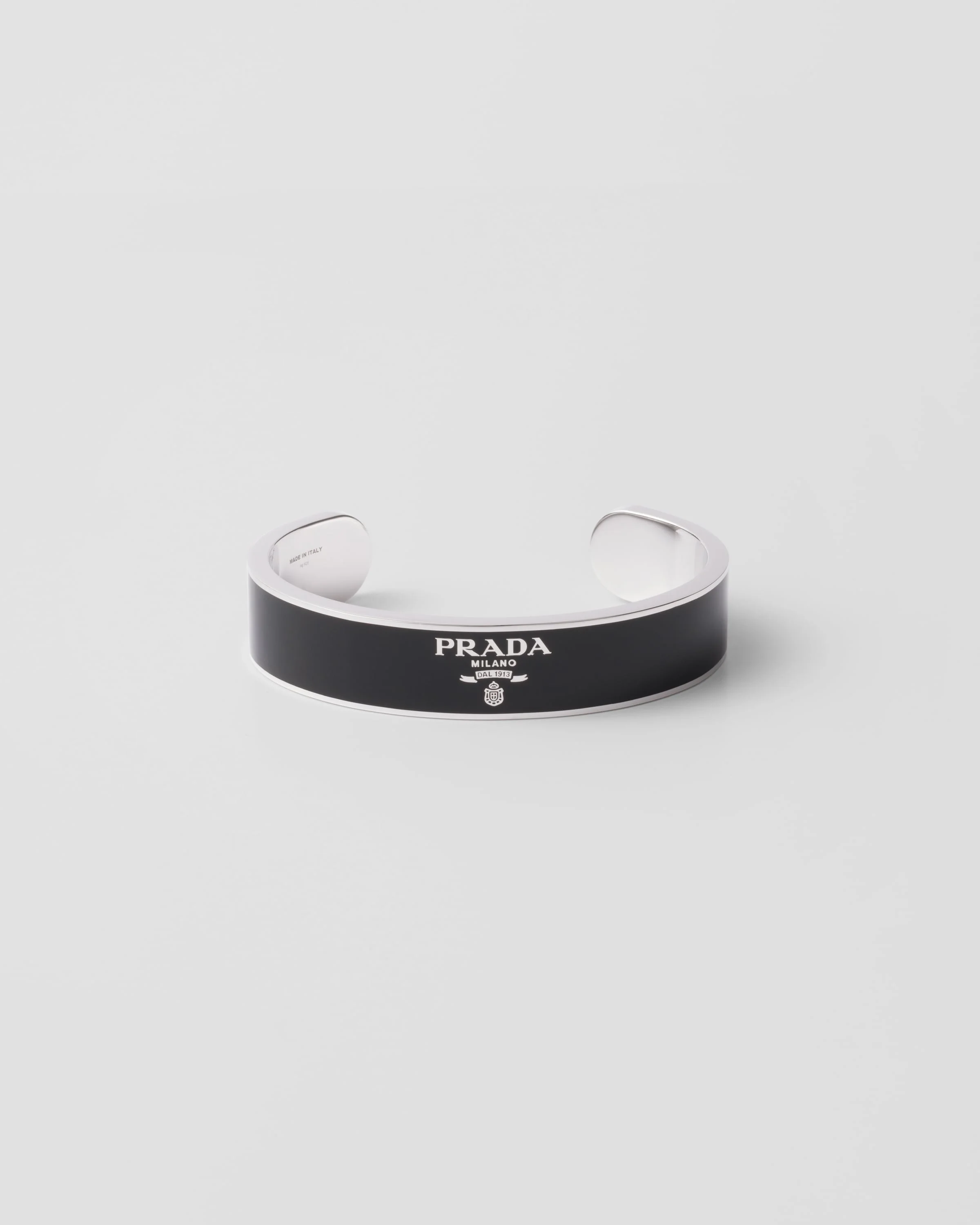 This sleek and sophisticated bangle bracelet with a modernist design made of enameled silver is enriched with the distinctive lettering logo. - Product code: 2JB519_2DSP_F0002 - Enameled 925 sterling silver - Visible logo - Available in different sizes - Imported MATERIALS 925 Silver