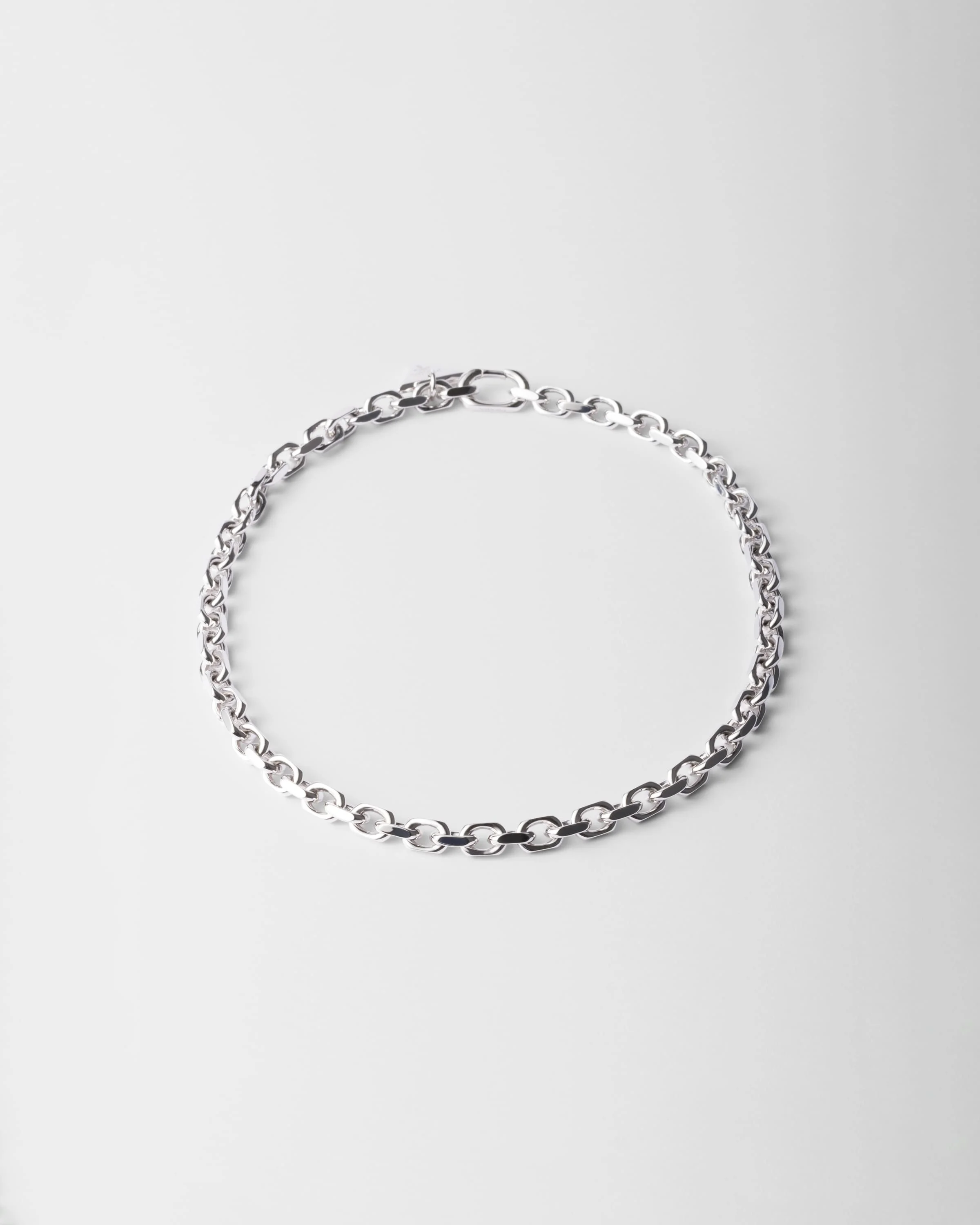 Strong lines define this silver necklace with palladium finish characterized by a modern chain design. The item is completed with the lettering logo engraved on the iconic triangle. - Product code: 2JCA96_2DXK_F0118 - 925 sterling silver - Visible logo on triangle - Lobster claw clasp - Imported MATERIALS 925 Silver