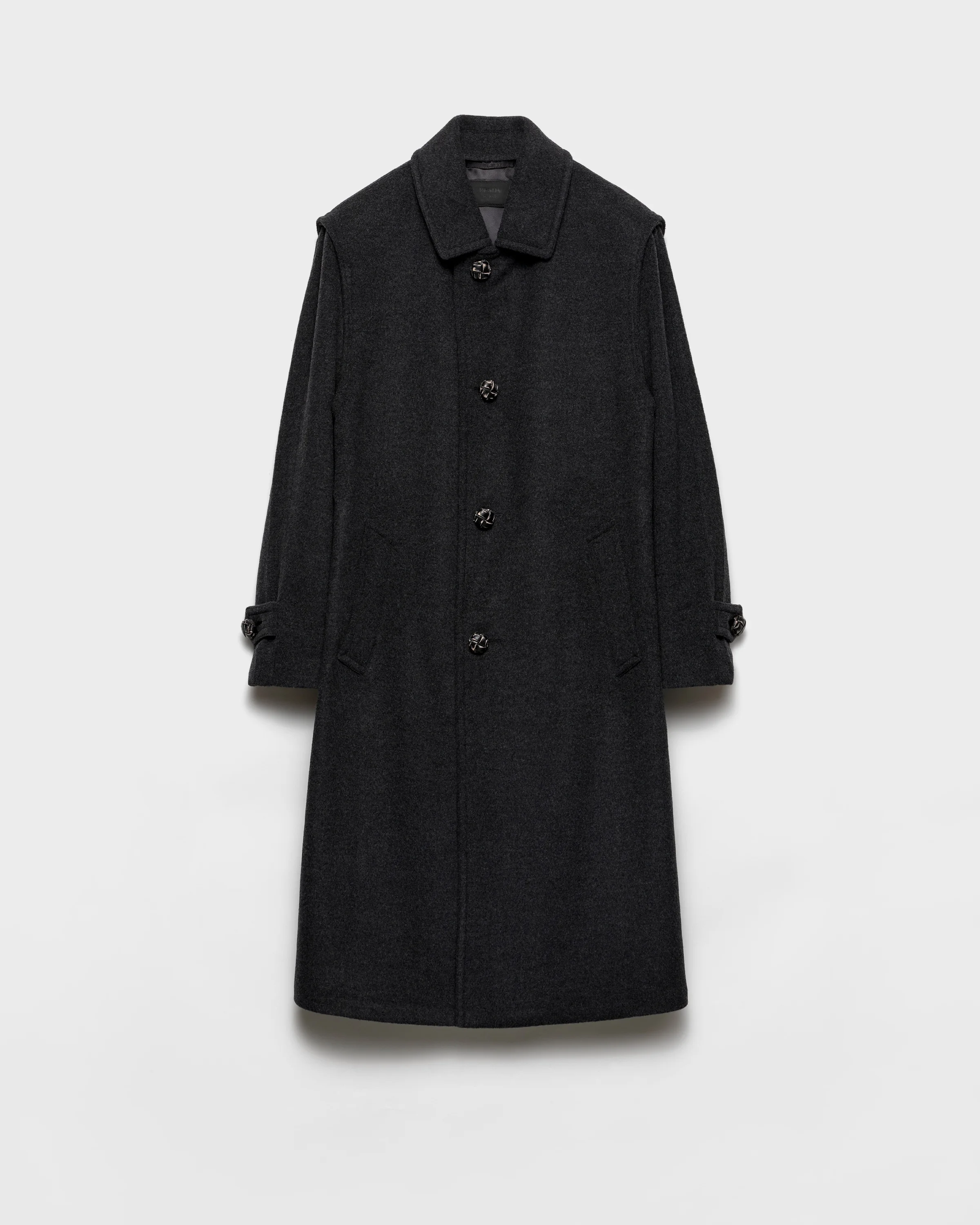 The loden coat with timeless charm is reinterpreted with a wool and cashmere blend fabric that gives the design sophisticated, contemporary allure. The tailored construction defines the comfortable and versatile garment decorated with the tonal triangle logo. - Product code: SGD004_1742_F0308_S_OOO - Regular fit - Shirt-style collar with tab - Straight sleeves - Four-button closure - Wide welt pockets - Cuff with strap and button - Regular shoulder - Hem with pleat - Partially lined garment - Fabric triangle logo and sartorial label - Imported - The model is 191 cm tall and wears a size 48 Height: 112cm MATERIALS Main material: 10% cashmere 90% virgin wool