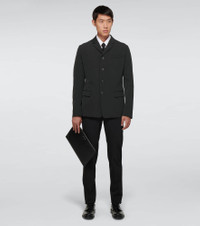 In a single-breasted design, this black technical blazer from Prada has a four-buttoned front, notched lapels, and a smooth and relaxed fit. Product Details - Made in Italy - Pockets: flap pockets - Material: 89% polyester, 11% elastane - Designer color name: Nero - Closure: buttoned front - Care instructions: dry clean - Lining: 100% cupro - Item number: P00521882 Size & Fit - True to size - Regular fit - Falls to the hip - The model in the picture is 185cm-6'1" and wearing a size IT 48