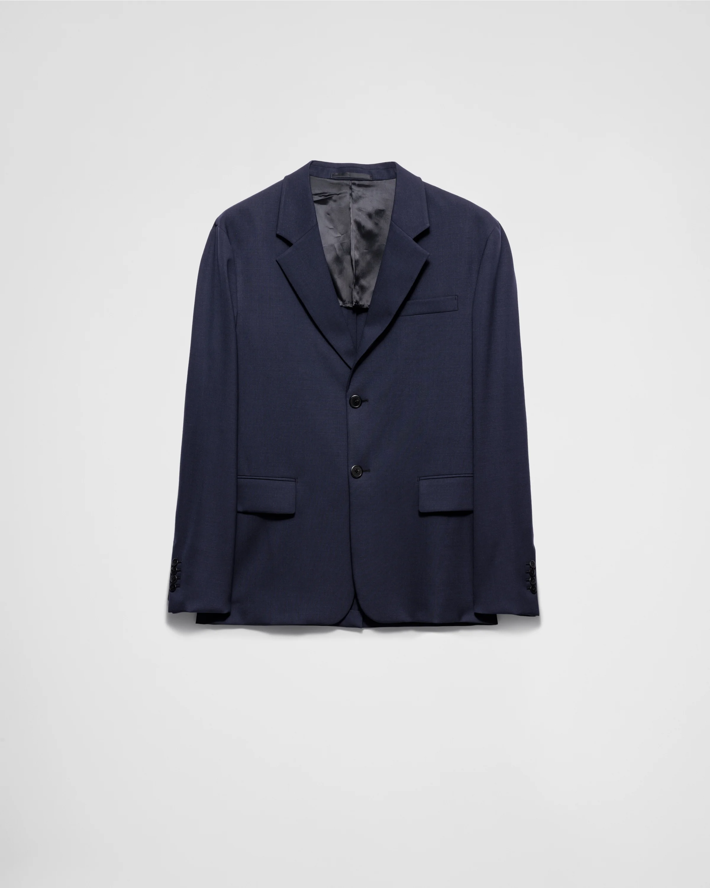 This wool blend jacket features a classic single-breasted silhouette with tailored construction. The timeless style is decorated with the emblematic triangle logo. - Product code: UGM321_16CA_F0008_S_OOO - Skinny fit - Sartorial workmanship - Notch lapel - Center vent - Two button closure - Four-button cuffs - Flapped welt pockets - Unlined - Lined sleeves - Fabric triangle on the back - Imported - The model is 189 cm tall and wears a size 38 Height: 74cm MATERIALS Main material: 2% elastane 98% virgin wool