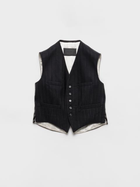 The vest is reinterpreted with modernist lines that redefine a classic of formal apparel. The tailored garment made of wool blend fabric is characterized by the striped lining, while welt pockets complete the look with a contemporary note. - Product code: UGL82_17WC_F0002_S_OOO - Five button closure - Welt pockets - Striped lining - Imported - The model is 190 cm tall and wears a size 48 Height: 55cm MATERIALS Main material: 11% polyamide 1% viscose 88% wool