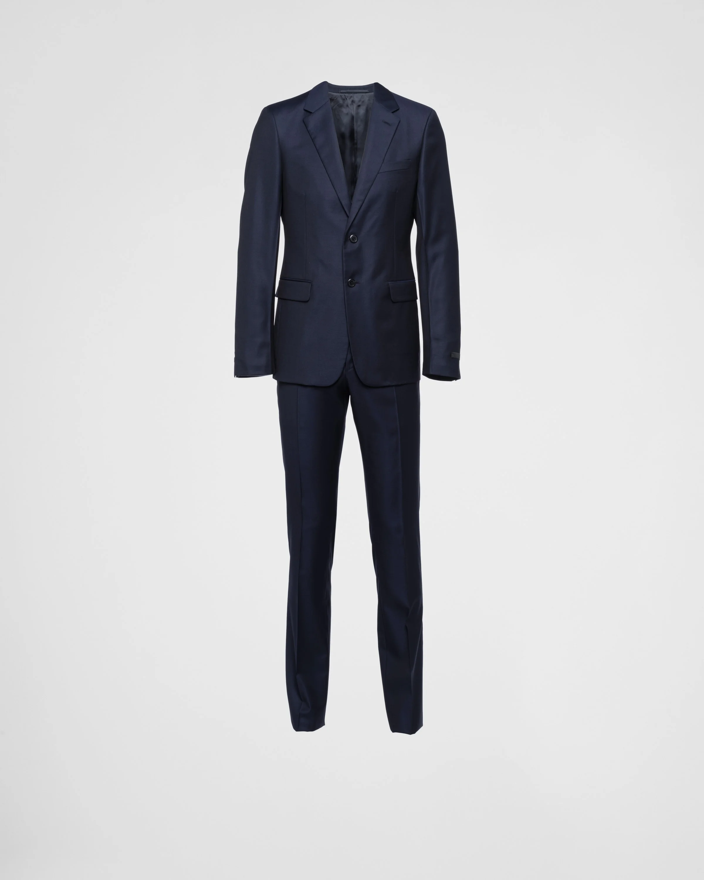 Sophisticated tailoring makes this slim-fit single-breasted suit distinctive. The jacket with a two-button closure has classic lapels and a center vent, while the pants feature front slant pockets and back welt pockets. Combining tailoring tradition and modern aesthetics, Prada creates a timeless design, featuring luxury materials and a high degree of technical know-how. - Product code: UAF420_11AD_F0008_S_152 - Skinny fit - Tailored - Classic lapels - Jacket with two-button closure - Back slit - Welt pockets with flap - Lined, with striped lining on the sleeves - Four-button cuffs - Sartorial label - Pants with button fastening - Front slant pockets - Welt pockets on the back - Hem width: 18 cm - Imported - The model is 190 cm tall and wears a size 48 Height: 72cm MATERIALS Main material: 100% virgin wool