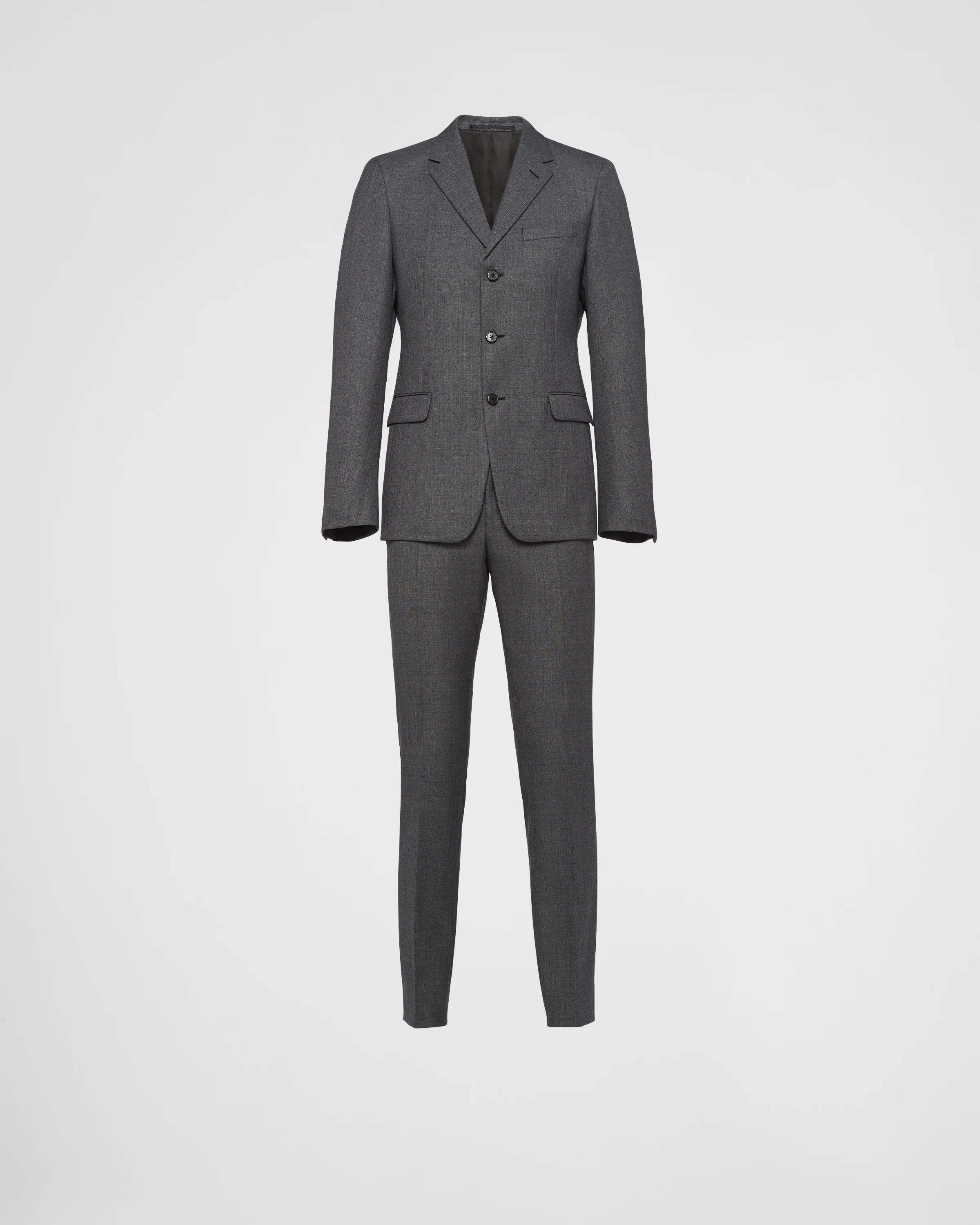 This wool suit with a precise cut combines the sartorial tradition of the brand with the continuous search for new perspectives in design. The suit features a slim-fit silhouette with a single-breasted jacket and sleek, straight pants. Refined, classic details complete the style with elegant and modern allure. - Product code: UAF436_1ZZ6_F0480_S_152 - Extra-slim fit - Sartorial tailoring - Notch lapels - Jacket with three-button closure - Back vent - Flapped welt pockets - Lined - Four-button cuffs - Sartorial label - Pants with button fly - Angled front slash pockets - Back welt pockets with button - Hem width: 18 cm - Imported - The model is 188 cm tall and wears a size 48 Height: 72cm MATERIALS Main material: 100% virgin wool