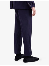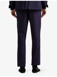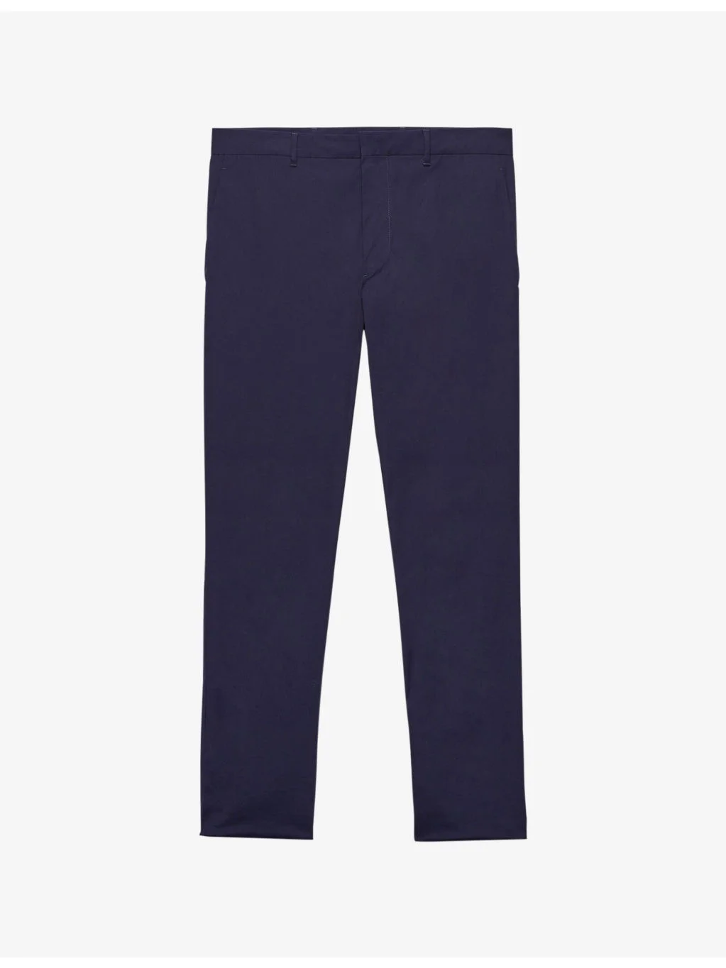 PRODUCT DETAILS - Prada stretch-poplin trousers - 78% cotton 4% elastane 18% polyamide - Exposed button and concealed hook-and-eye and zip-fly fastening at front - Slim fit, mid rise, tapered leg, structured waistband with belt loops, two front slash pockets, two rear welt buttoned pockets, pressed creases, triangle logo embroidered at back - Machine wash at 30°C - Midweight, slight stretch Ref: R04435850